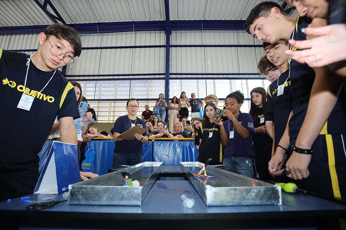 No dia 14 de setembro, a Unidade Ipiranga foi palco de um evento especial e inovador: a 1ª edição da MOBVAP SP, uma competição de barquinhos a vapor que envolveu alunos dos 9º anos e das 1ª séries do Ensino Médio das Unidades Objetivo Ipiranga e Objetivo Tatuapé. O projeto, além de estimular o espírito de equipe, trouxe um desafio empolgante para os estudantes, que puderam aplicar na prática conceitos de física e engenharia, enquanto se divertiam na construção e navegação dos barcos.