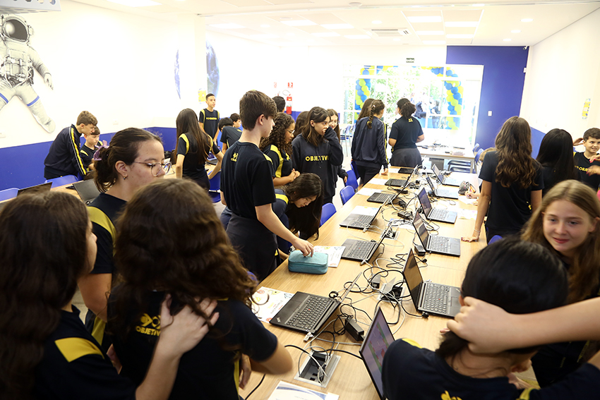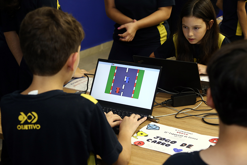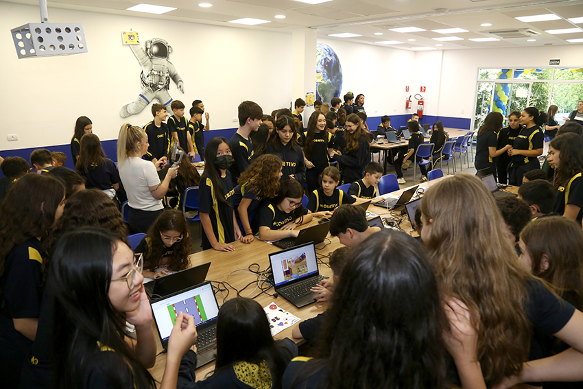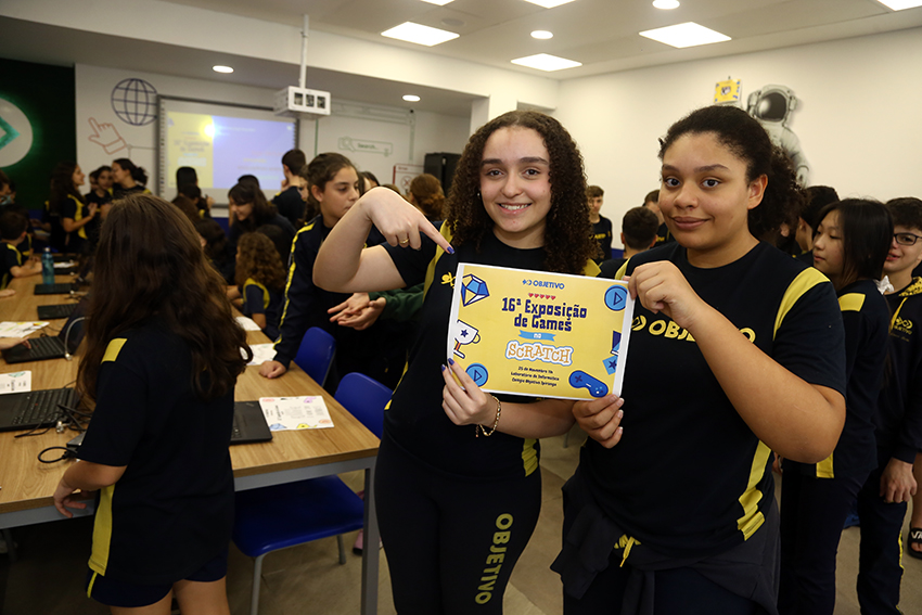 No dia 25/11, realizamos a 16ª Exposição de Games no Scratch, um evento repleto de criatividade e inovação. Os alunos dos 7º anos surpreenderam ao apresentar jogos desenvolvidos por eles mesmos, utilizando a plataforma Scratch para criar narrativas interativas e desafiadoras. Além de valorizar o protagonismo dos estudantes, a exposição foi também uma oportunidade especial de acolhimento para os alunos do 5º ano, que no próximo ano estarão iniciando um novo nível de ensino. Eles puderam conhecer as produções e interagir com os projetos, vivenciando de perto as novas experiências que os aguardam.