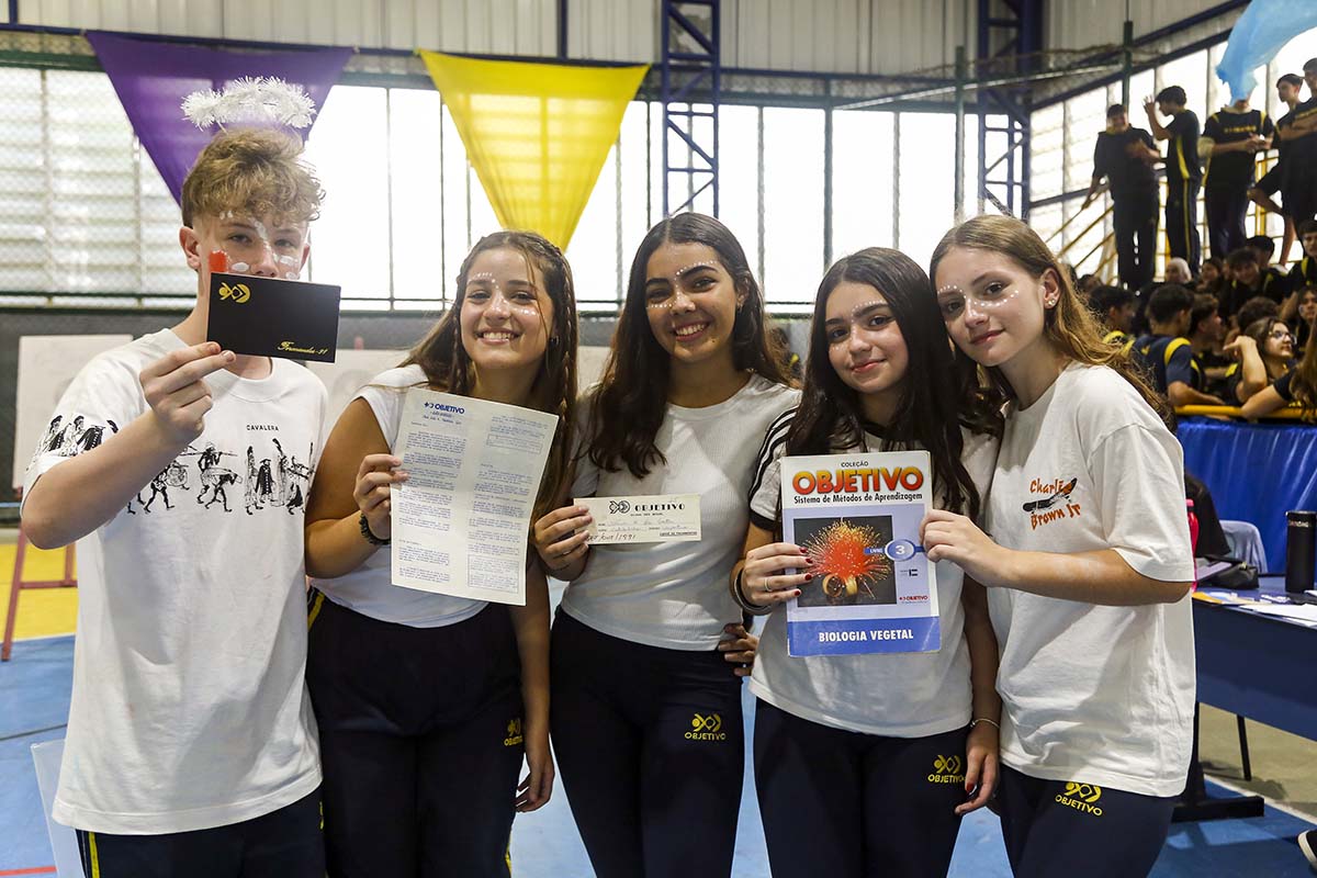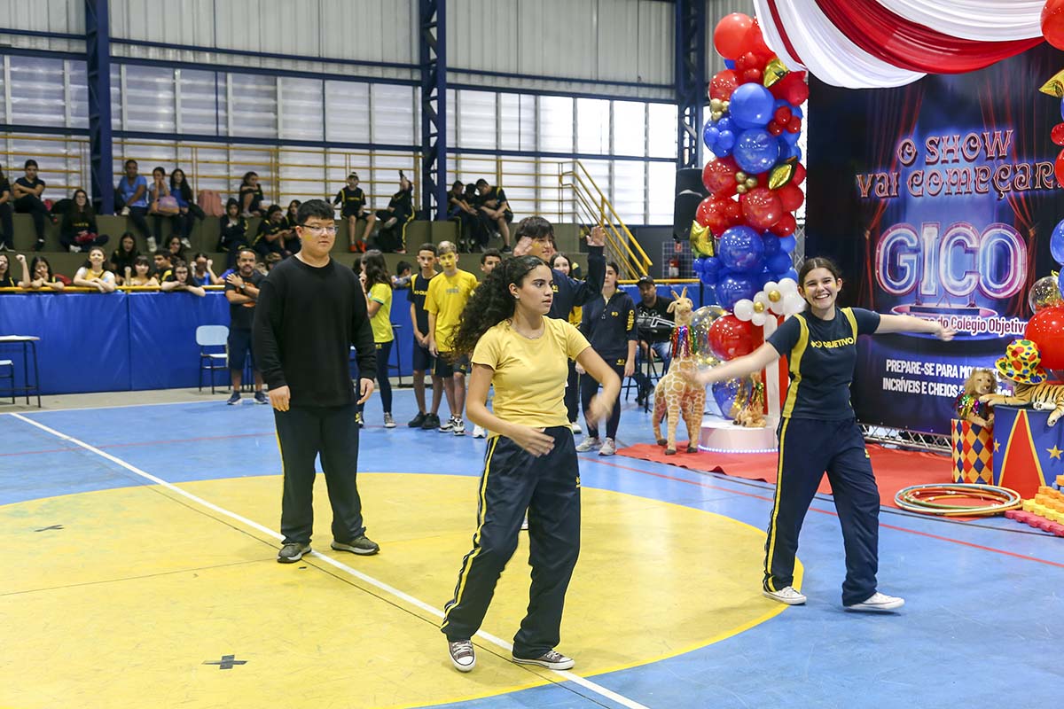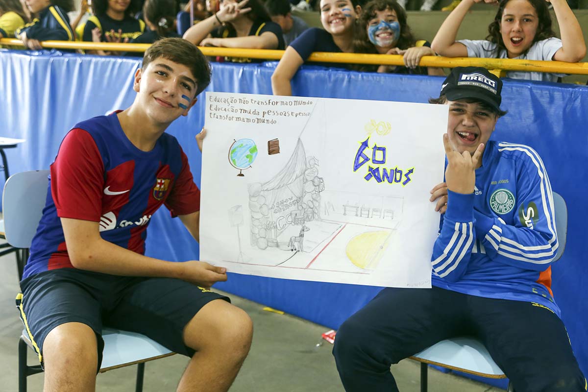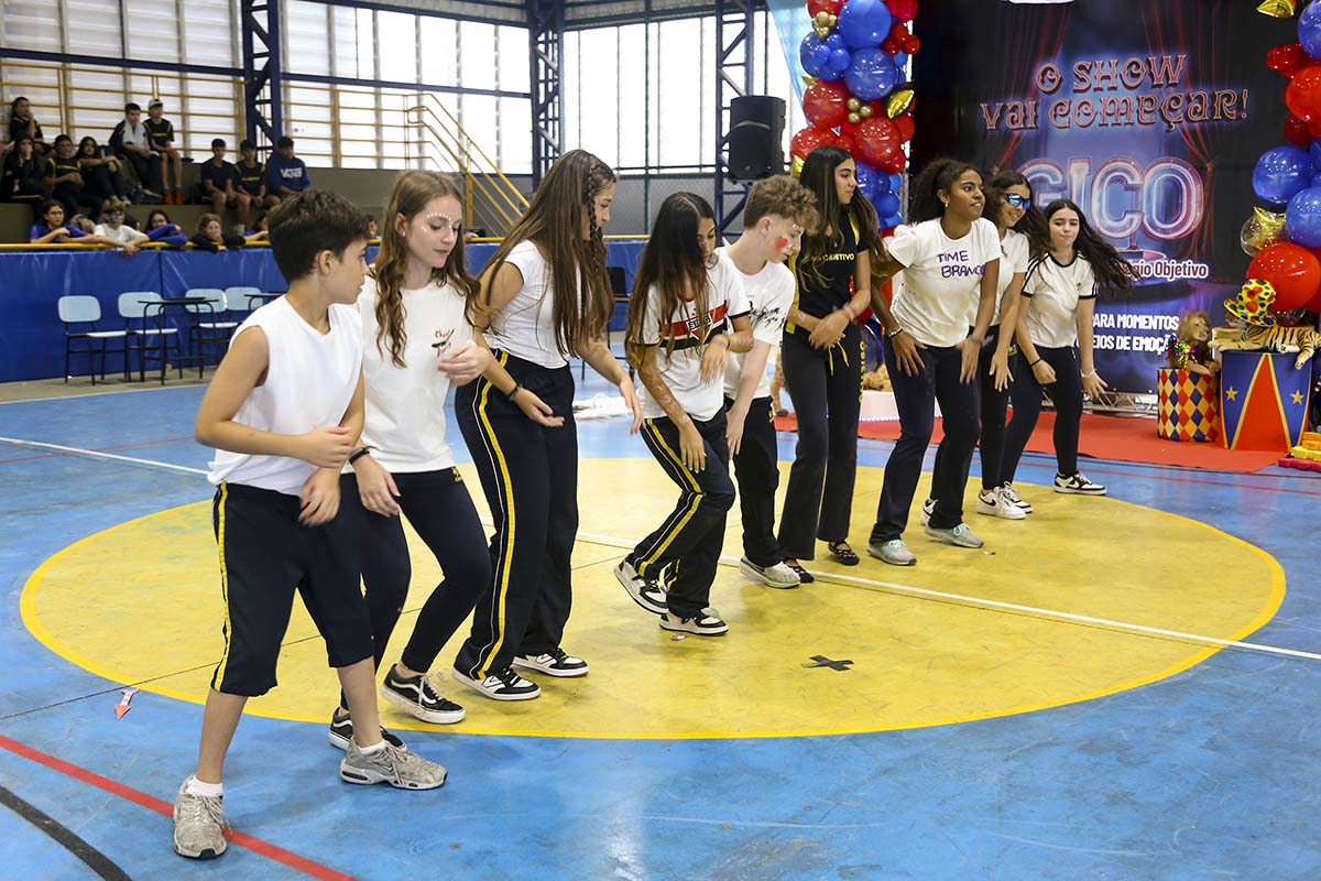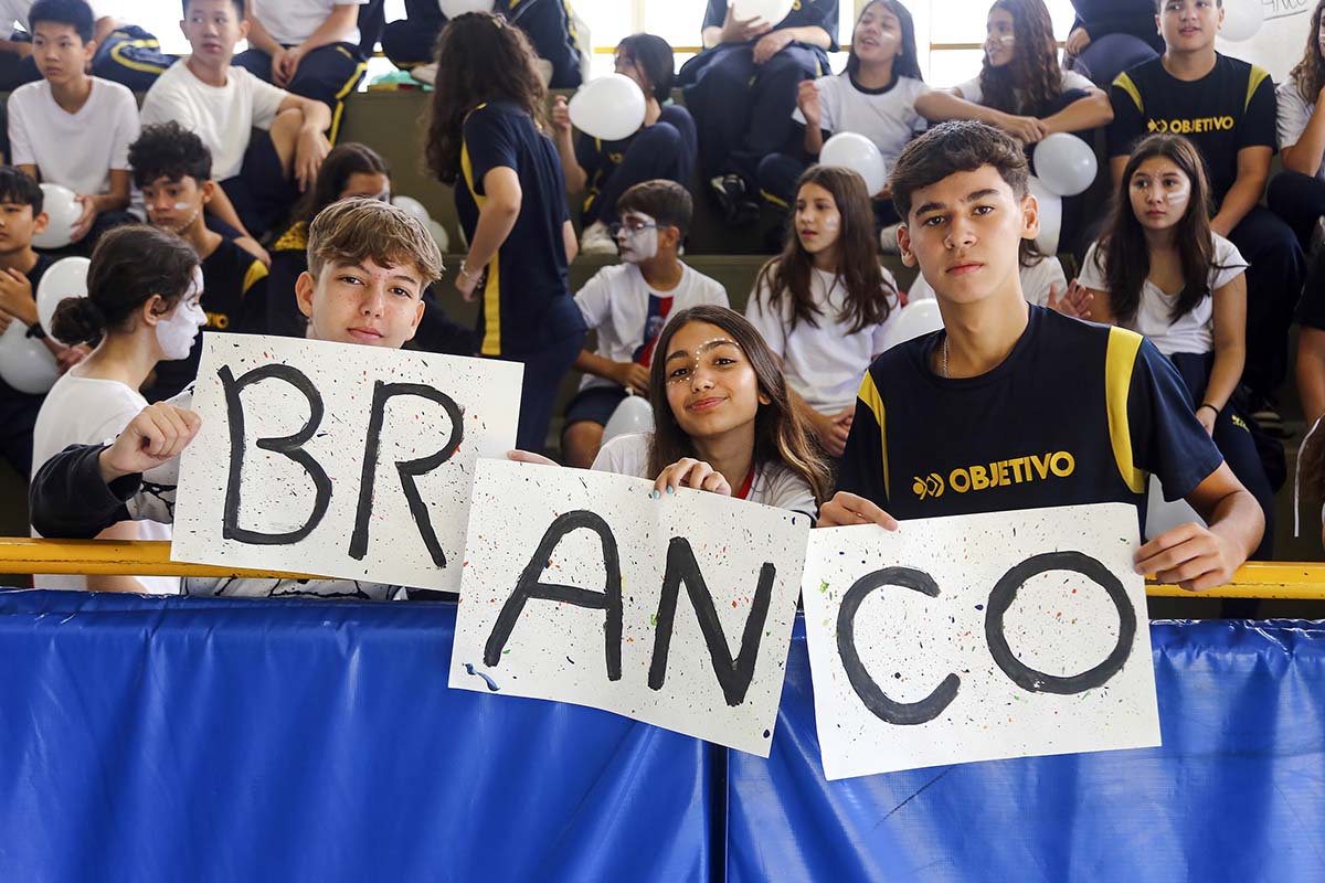 Divididos em três equipes — amarela, azul e branca — nossos alunos participaram com muita empolgação de diversas atividades, como recreações, apresentações de dança e produção de desenhos. Nesta edição especial da GICO, o tema foi a celebração dos 60 anos do Objetivo, o que trouxe ainda mais significado às vivências. O espírito de equipe, a criatividade e o companheirismo deram o tom do evento.