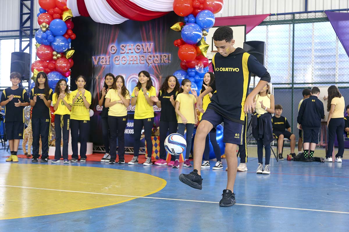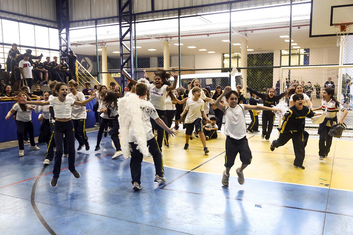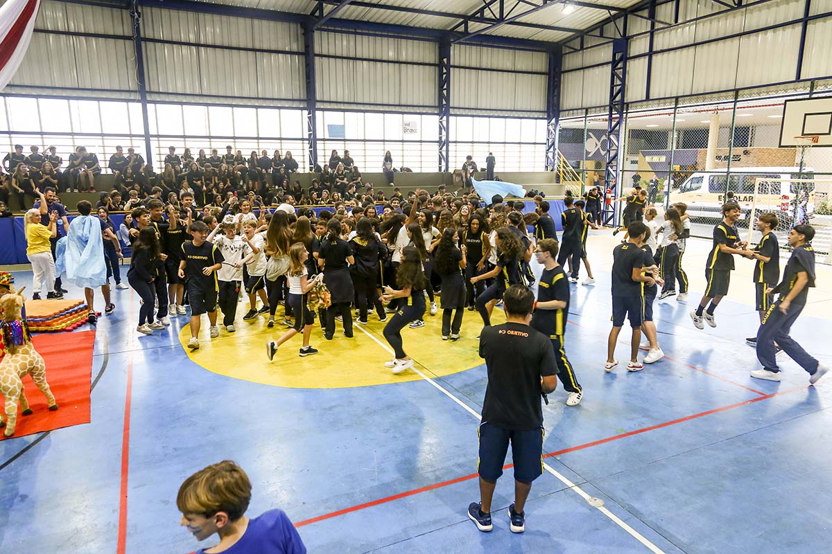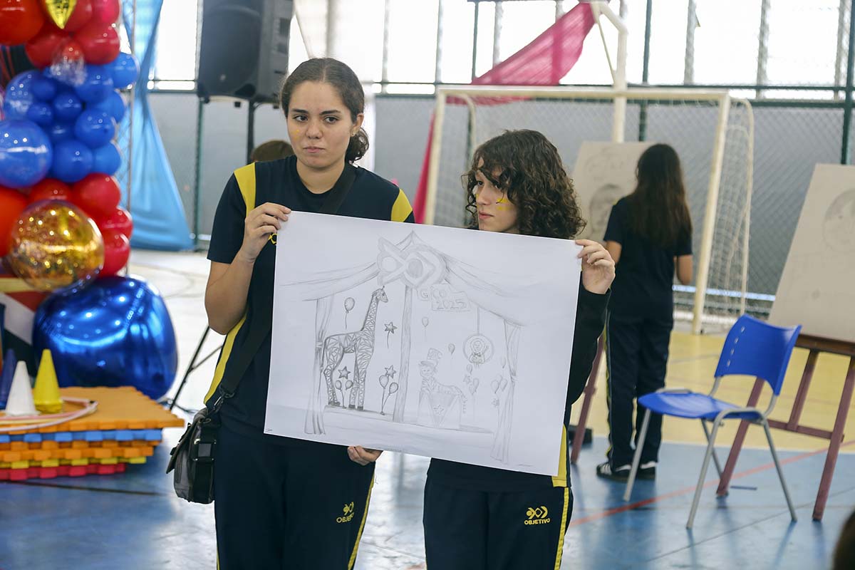 Divididos em três equipes — amarela, azul e branca — nossos alunos participaram com muita empolgação de diversas atividades, como recreações, apresentações de dança e produção de desenhos. Nesta edição especial da GICO, o tema foi a celebração dos 60 anos do Objetivo, o que trouxe ainda mais significado às vivências. O espírito de equipe, a criatividade e o companheirismo deram o tom do evento.