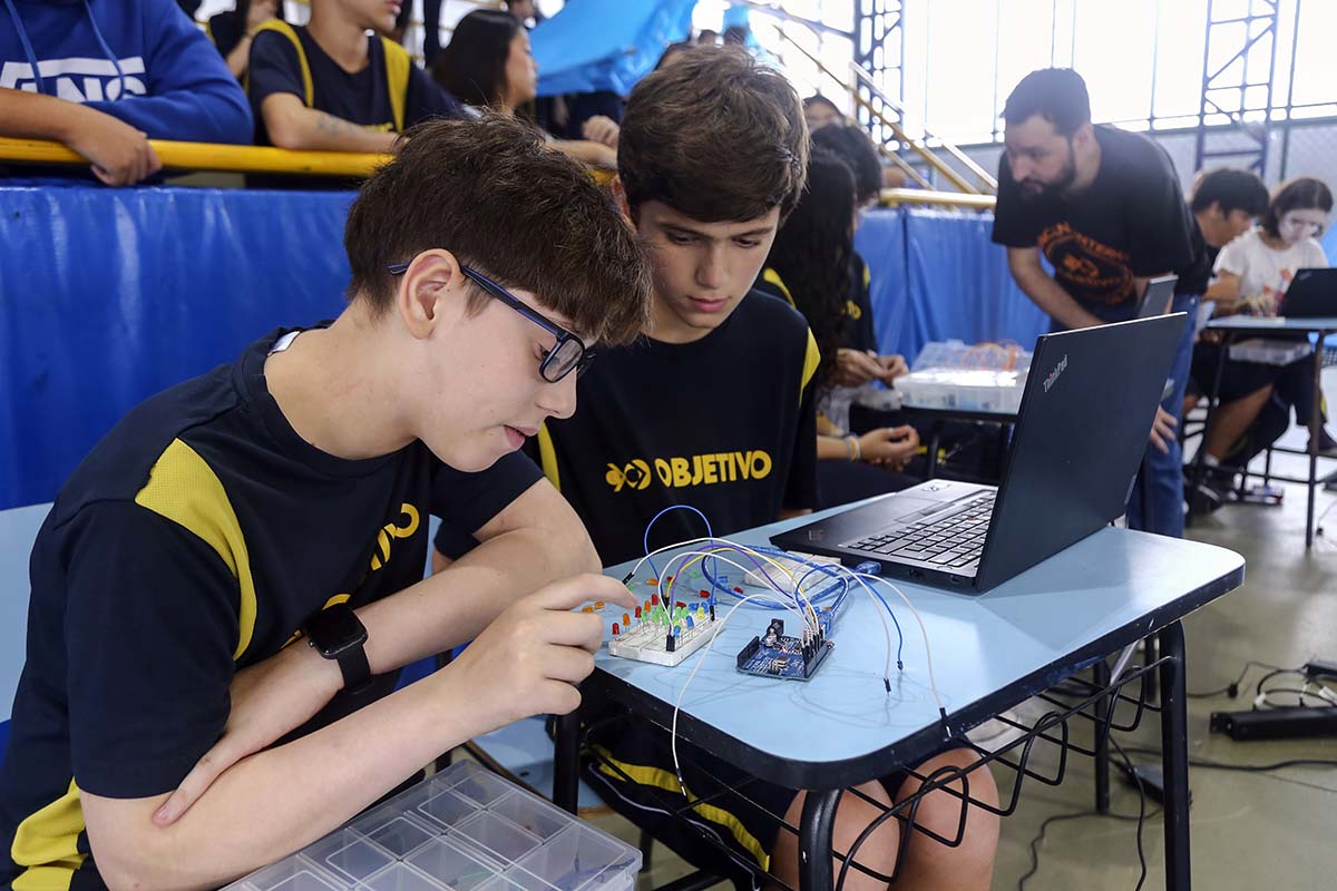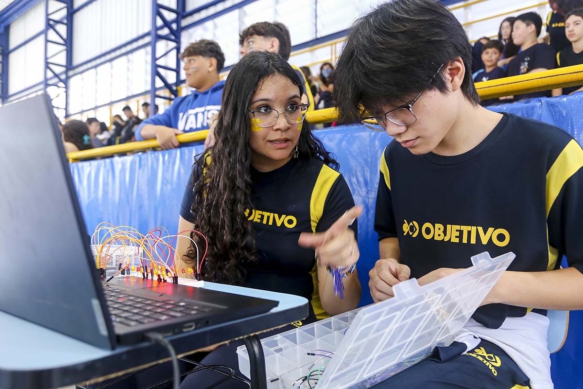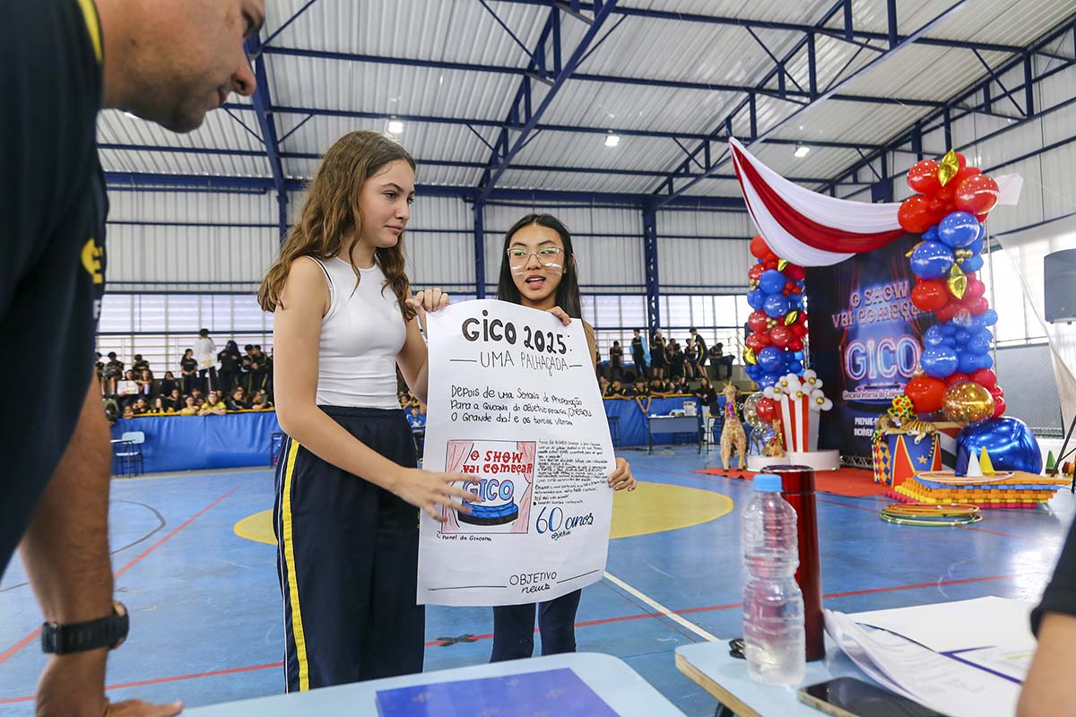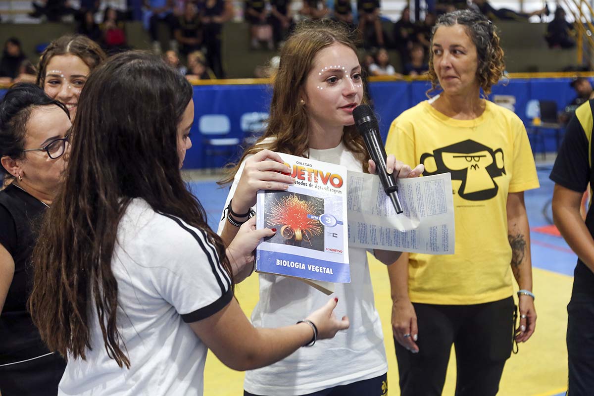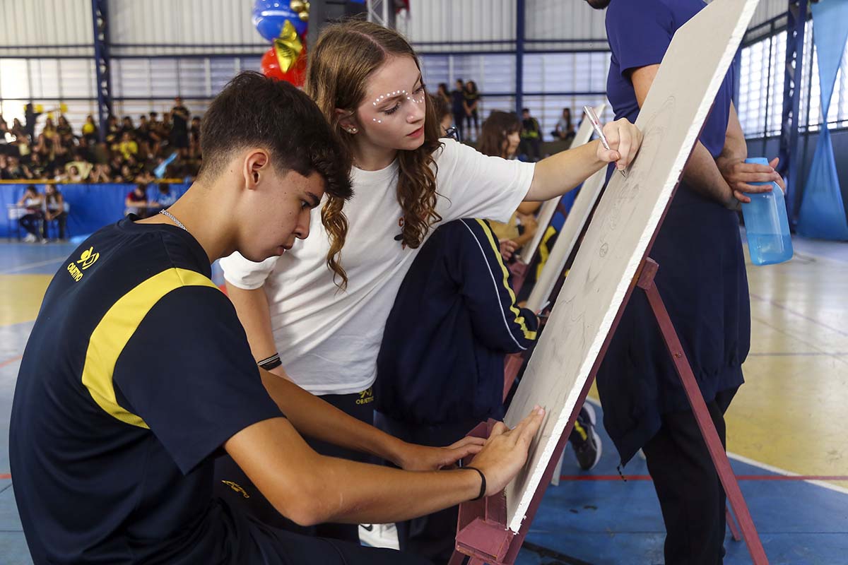 Divididos em três equipes — amarela, azul e branca — nossos alunos participaram com muita empolgação de diversas atividades, como recreações, apresentações de dança e produção de desenhos. Nesta edição especial da GICO, o tema foi a celebração dos 60 anos do Objetivo, o que trouxe ainda mais significado às vivências. O espírito de equipe, a criatividade e o companheirismo deram o tom do evento.