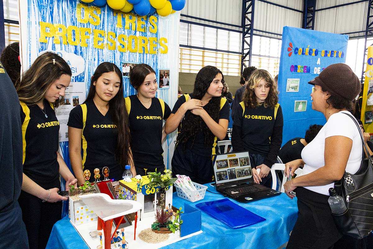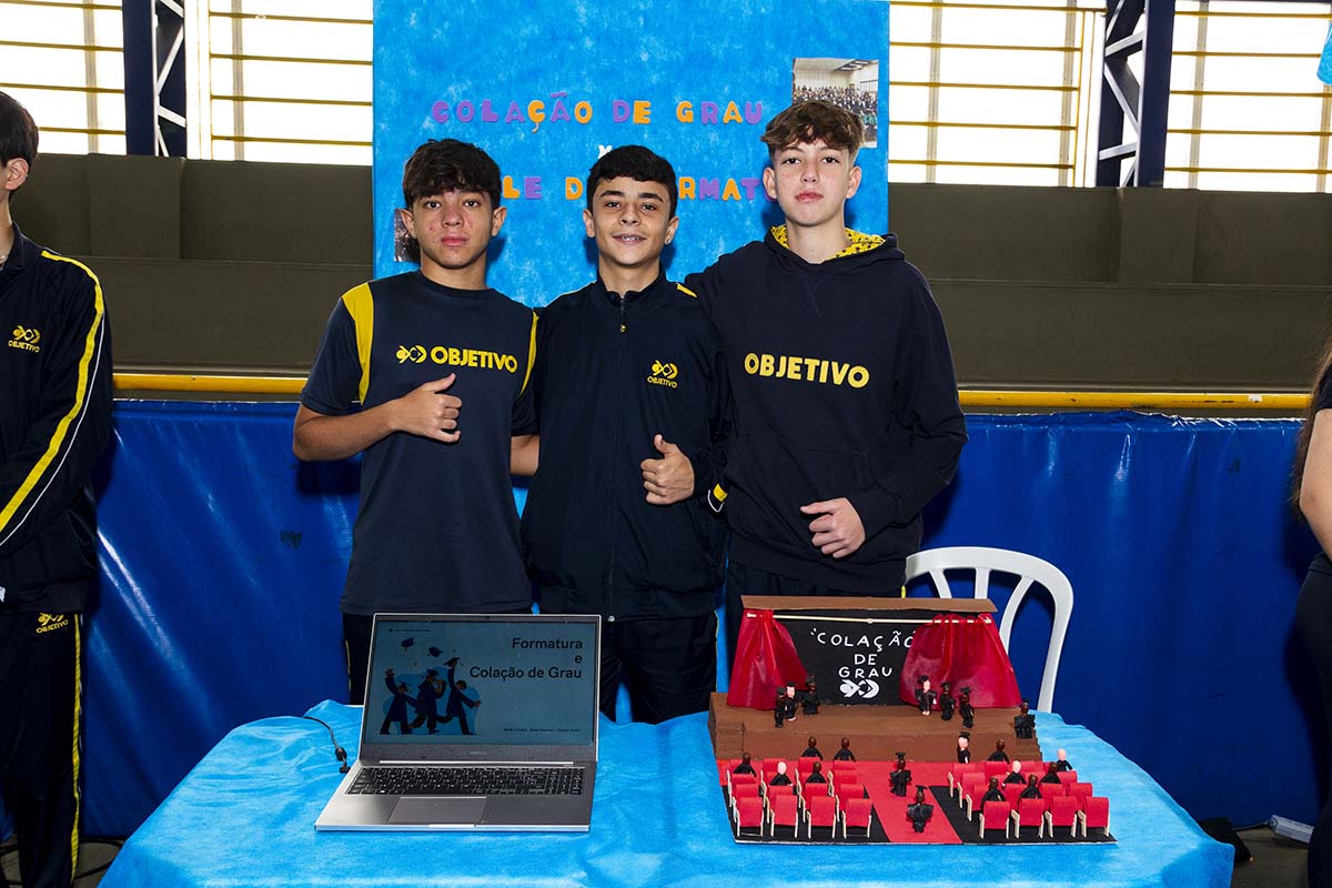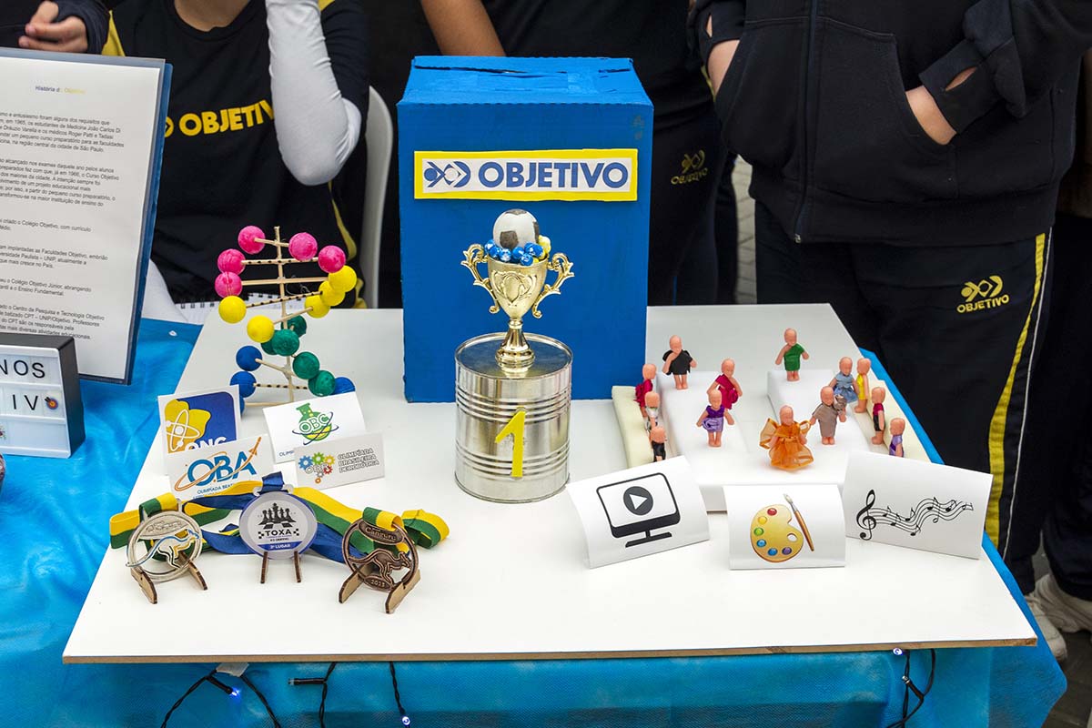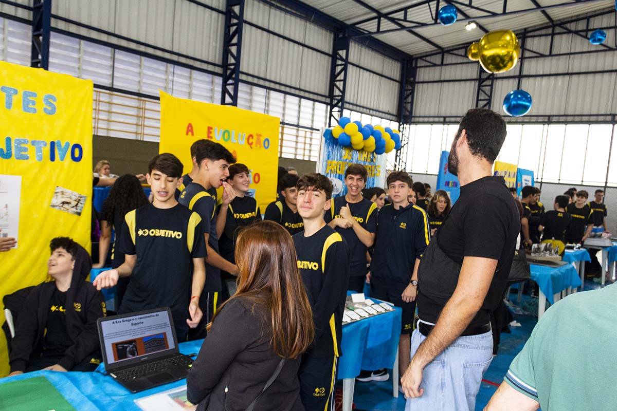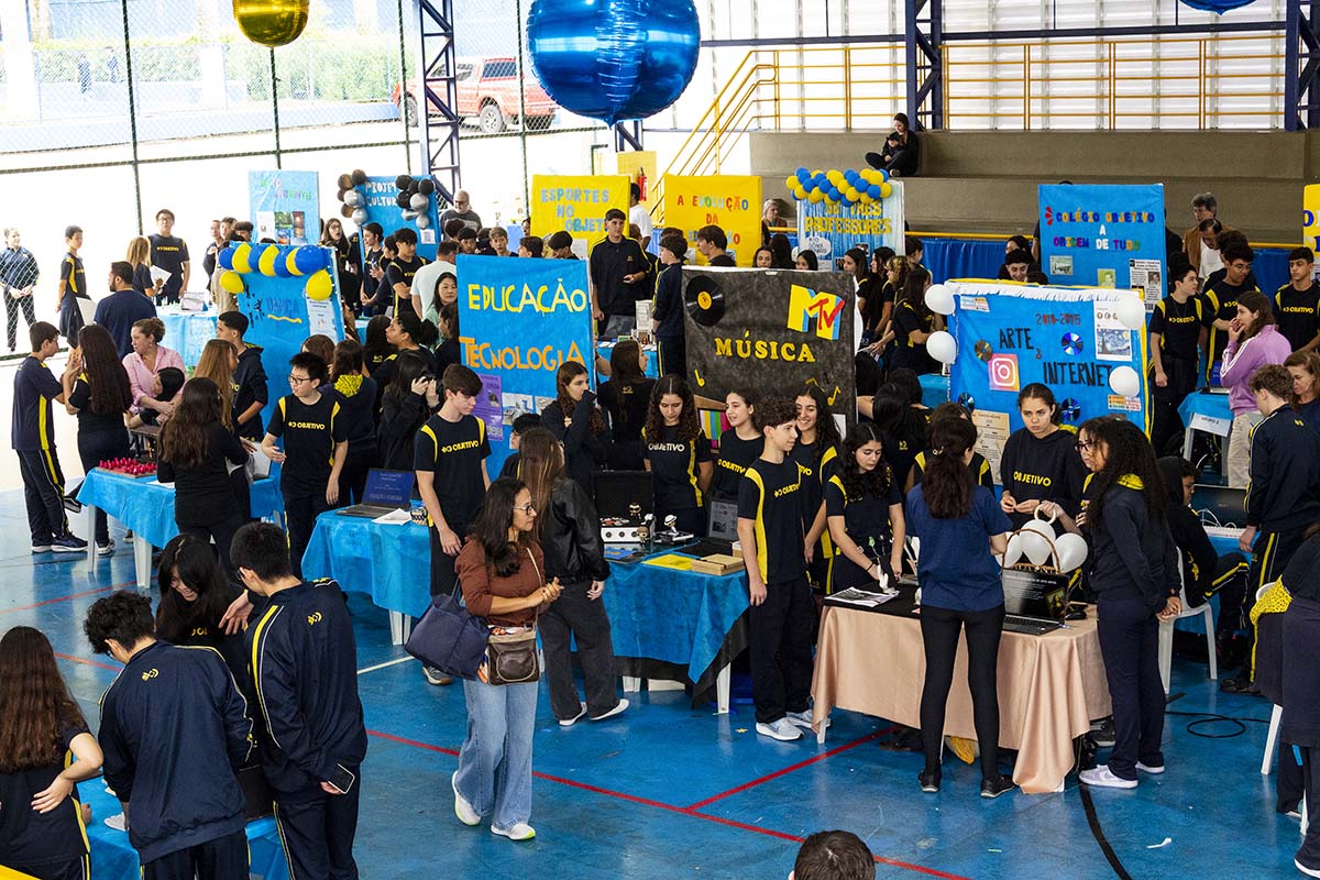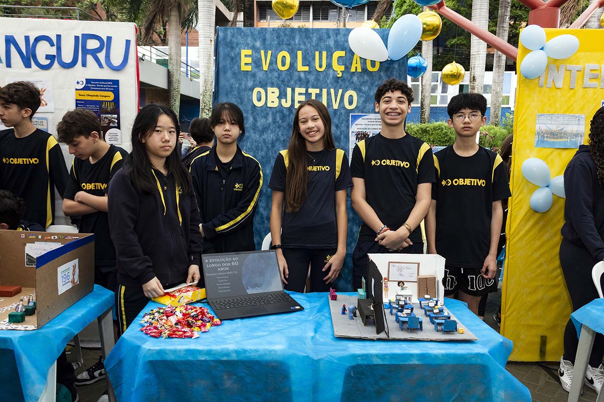 Com o tema “60 anos de história e conquistas”, os alunos revisitaram o passado da instituição, produzindo trabalhos inspirados na trajetória e nas transformações vividas pelo Objetivo ao longo das décadas. A proposta levou os estudantes a explorarem aspectos como esportes, tecnologia, política, moda, música, meio ambiente, artes, educação, hábitos e costumes — tudo sob a perspectiva da evolução do próprio Objetivo e do mundo ao seu redor.