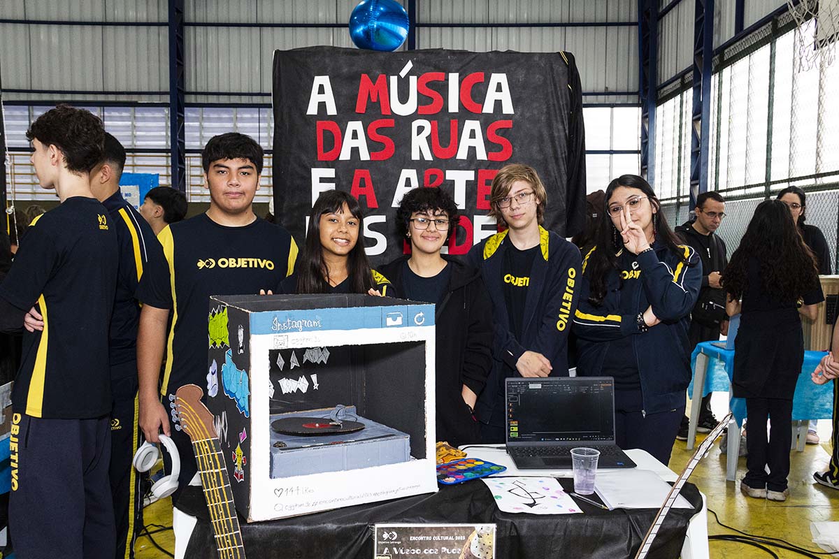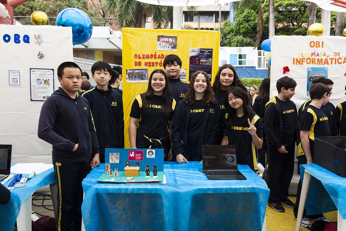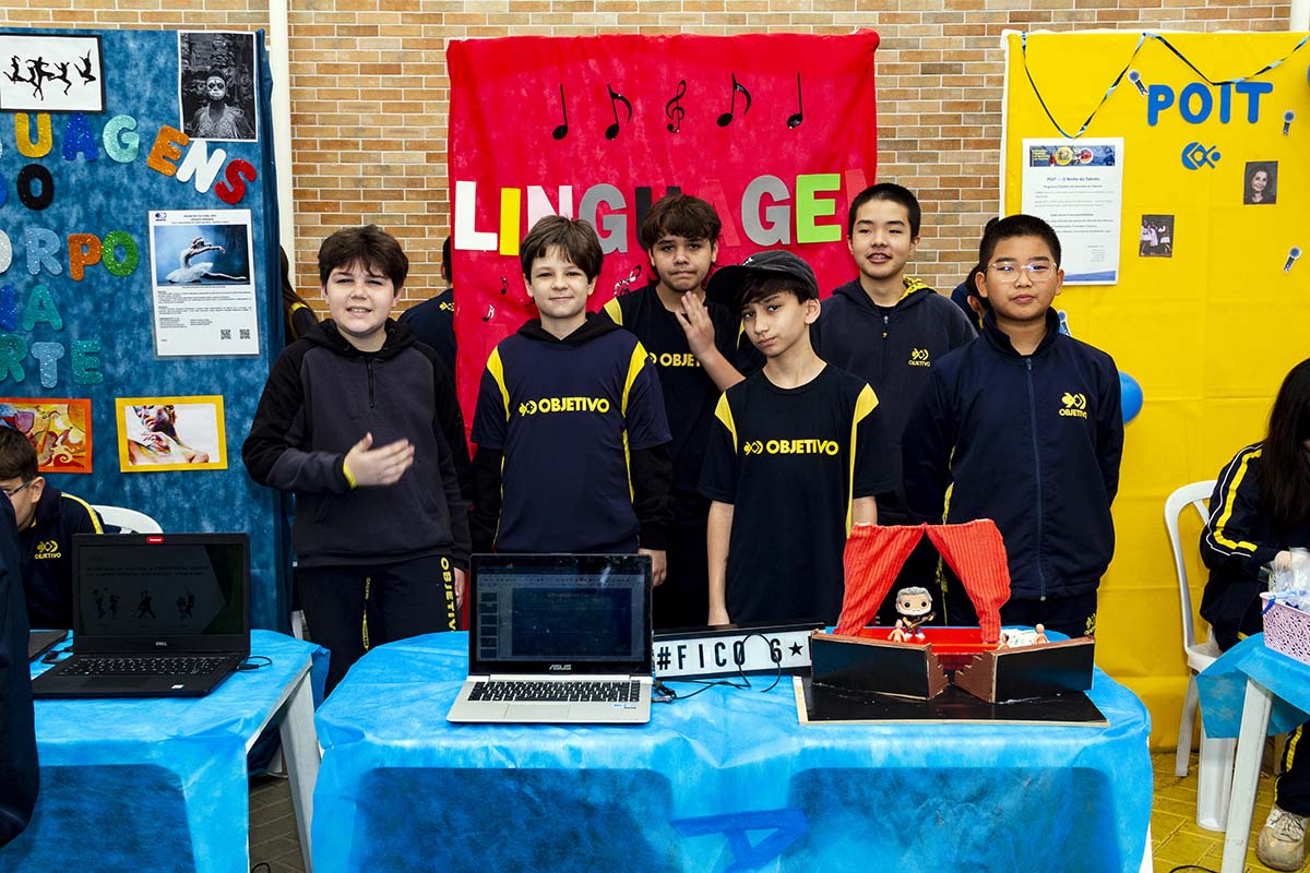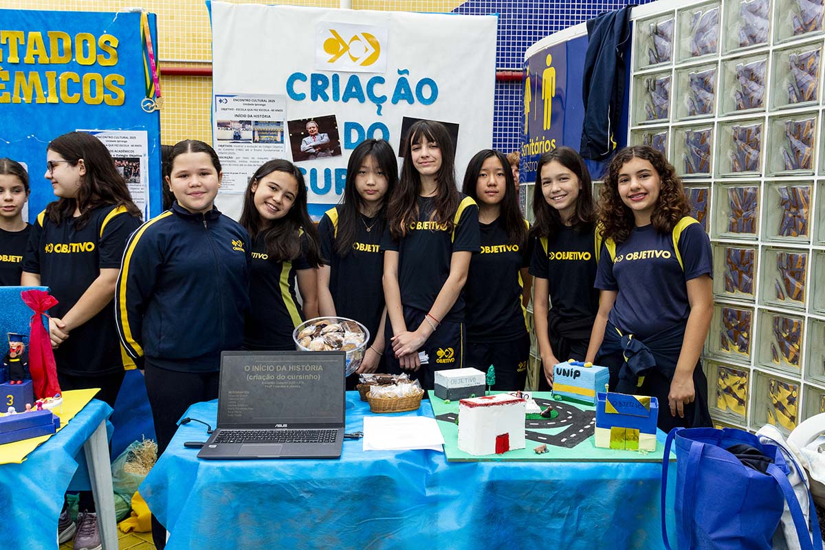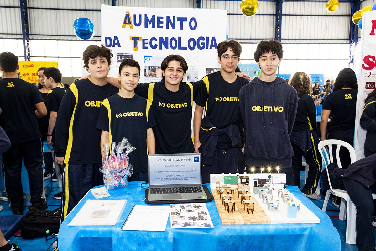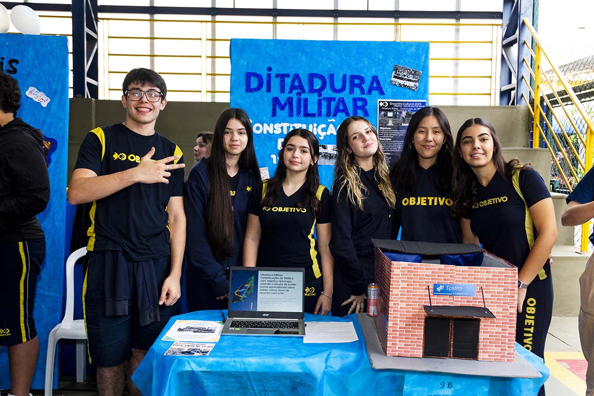 Com o tema “60 anos de história e conquistas”, os alunos revisitaram o passado da instituição, produzindo trabalhos inspirados na trajetória e nas transformações vividas pelo Objetivo ao longo das décadas. A proposta levou os estudantes a explorarem aspectos como esportes, tecnologia, política, moda, música, meio ambiente, artes, educação, hábitos e costumes — tudo sob a perspectiva da evolução do próprio Objetivo e do mundo ao seu redor.