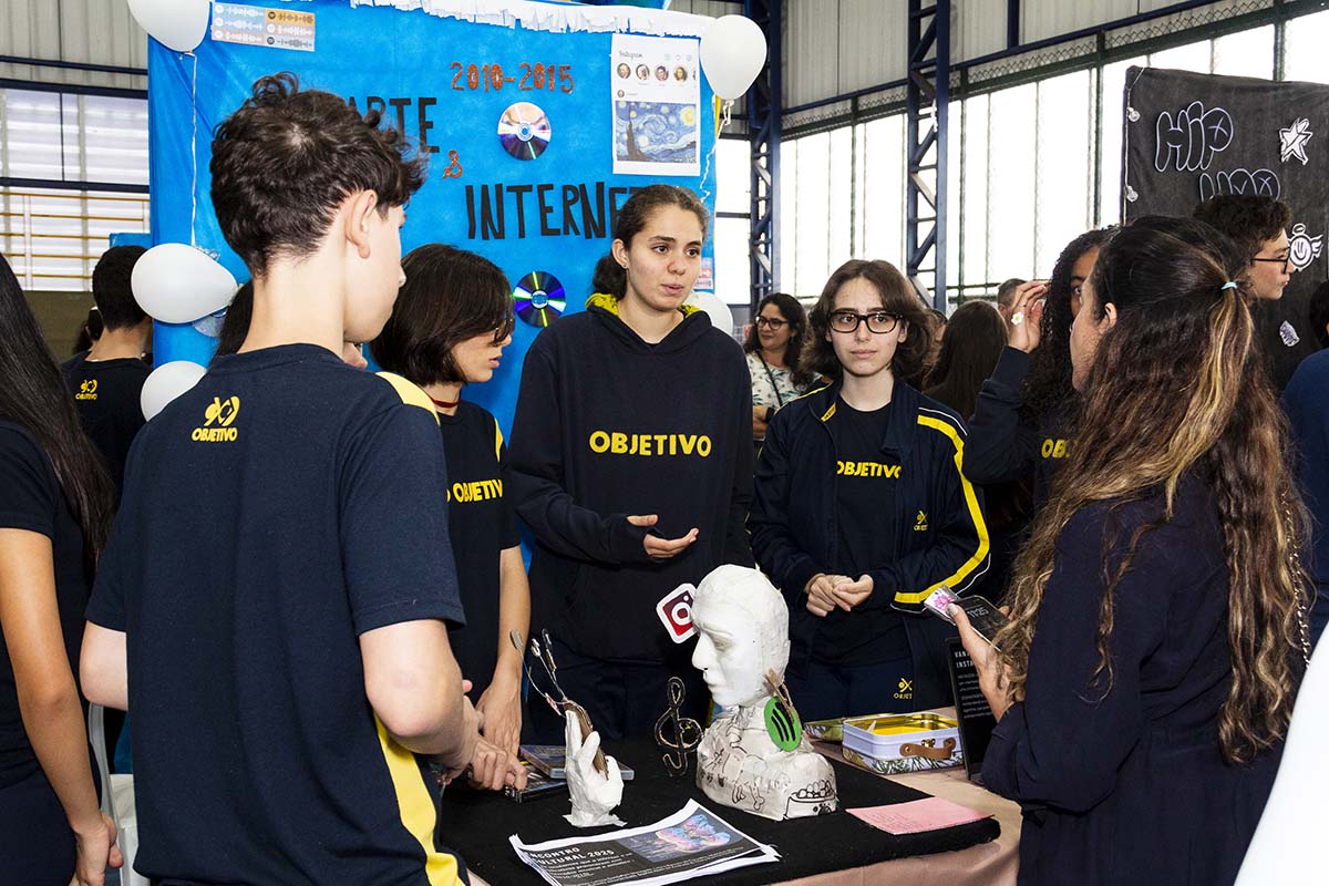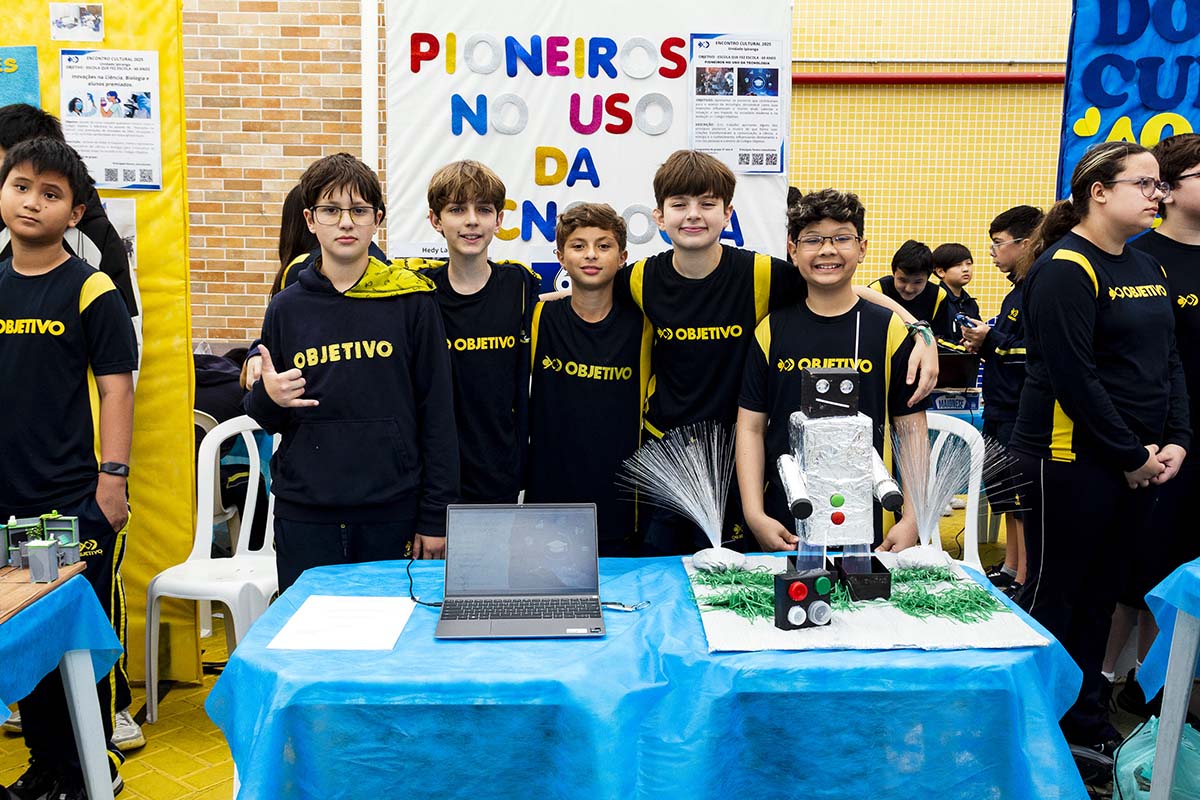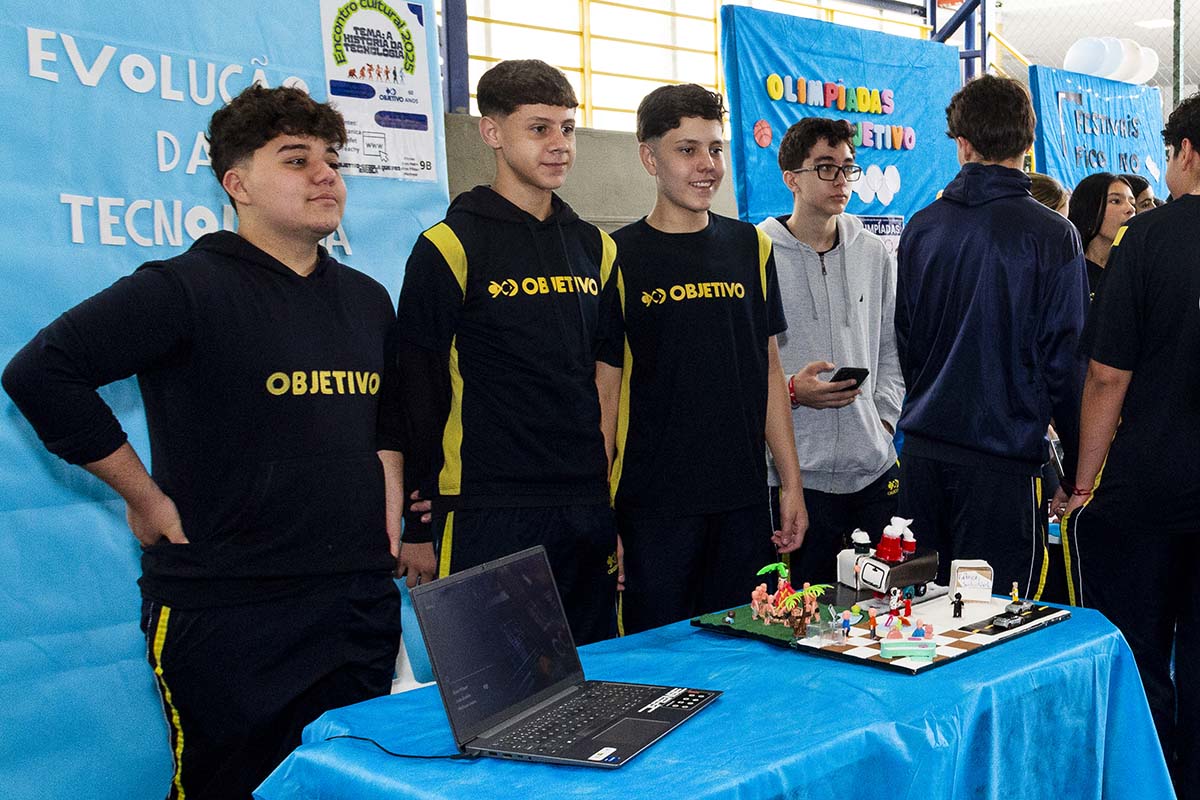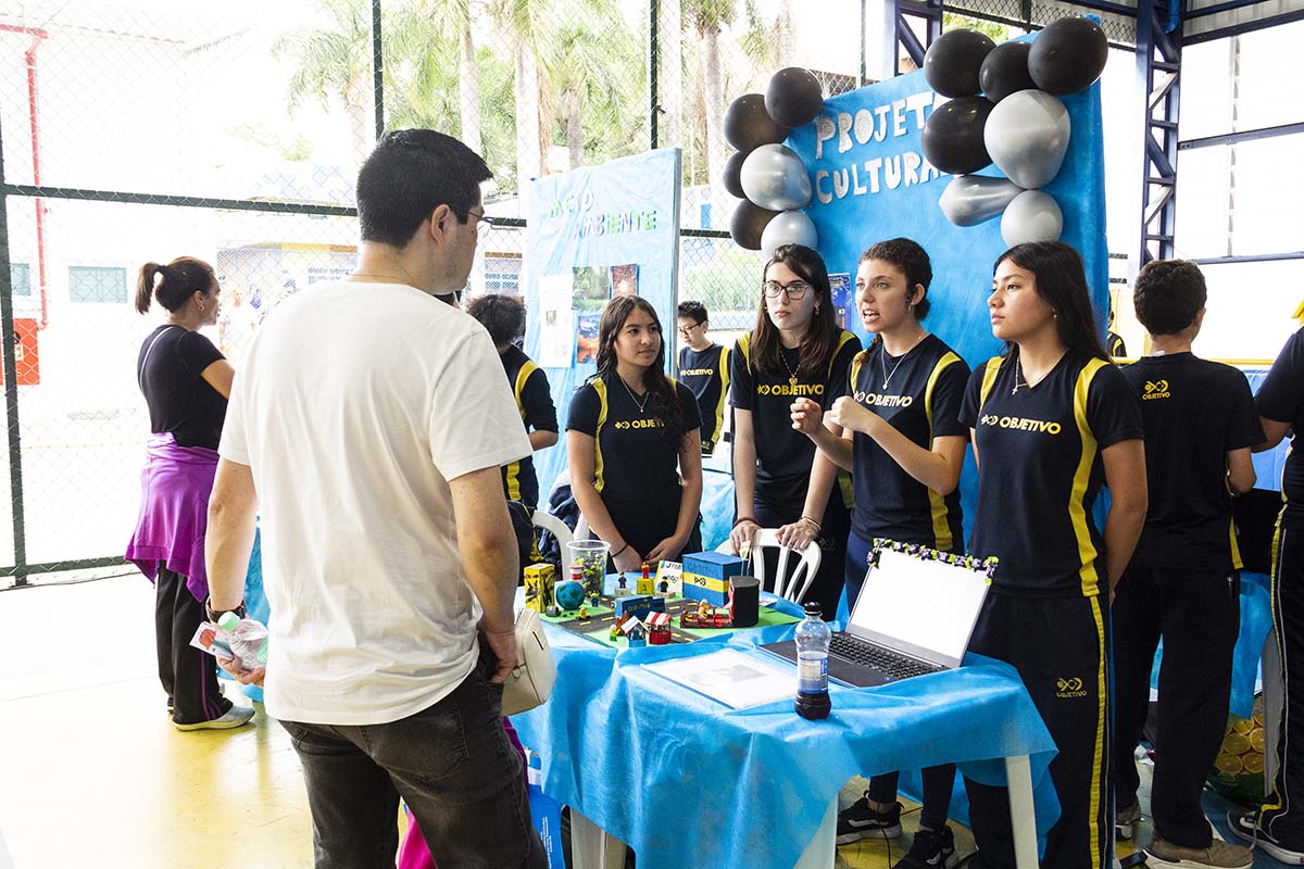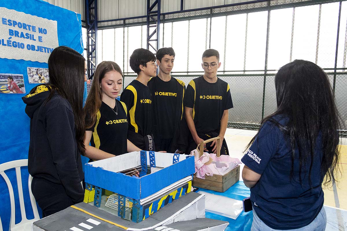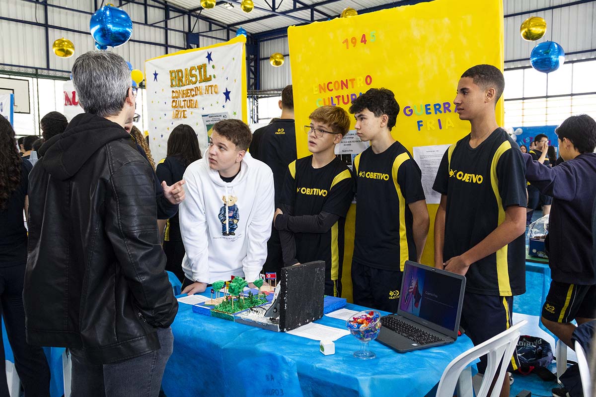 Com o tema “60 anos de história e conquistas”, os alunos revisitaram o passado da instituição, produzindo trabalhos inspirados na trajetória e nas transformações vividas pelo Objetivo ao longo das décadas. A proposta levou os estudantes a explorarem aspectos como esportes, tecnologia, política, moda, música, meio ambiente, artes, educação, hábitos e costumes — tudo sob a perspectiva da evolução do próprio Objetivo e do mundo ao seu redor.
