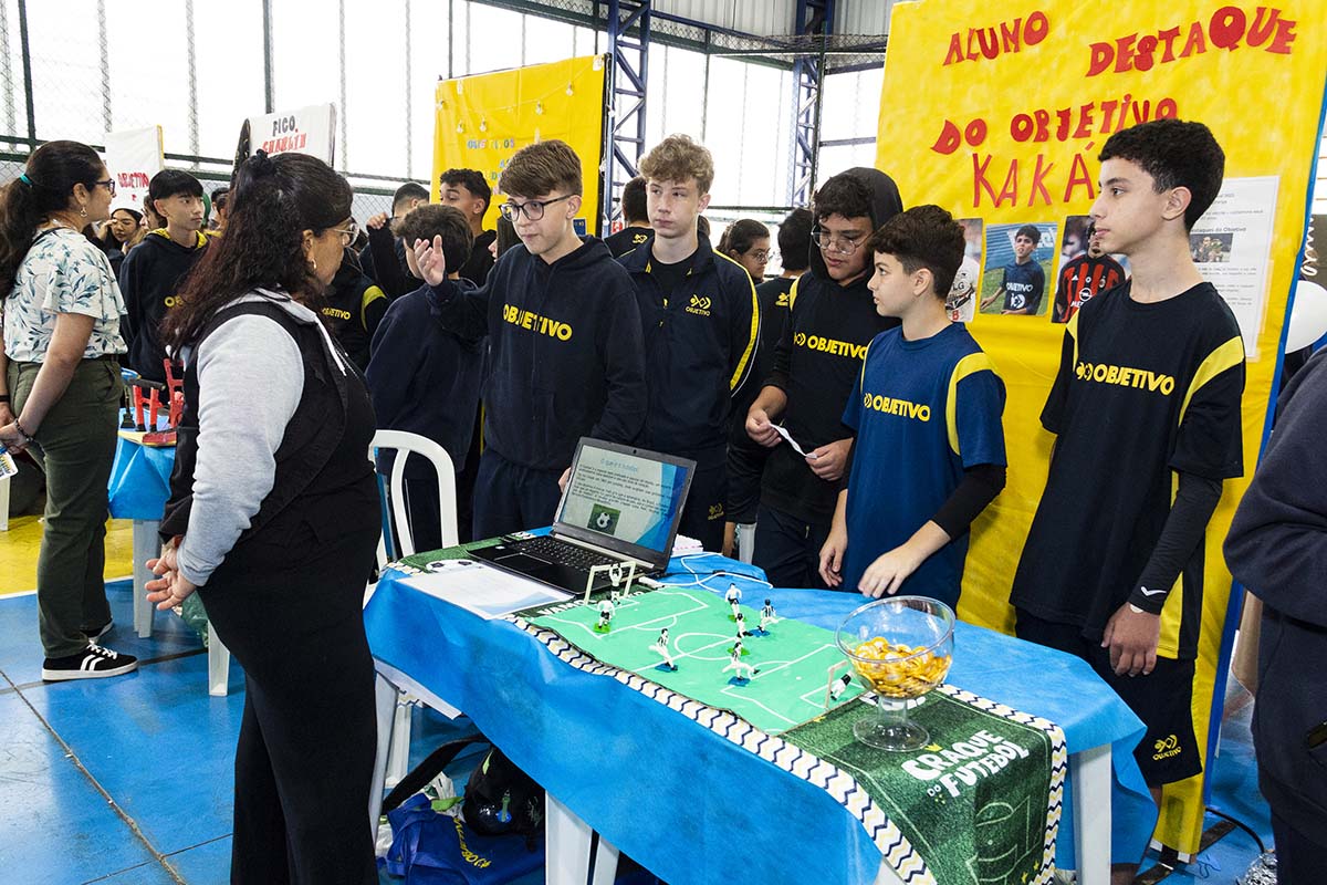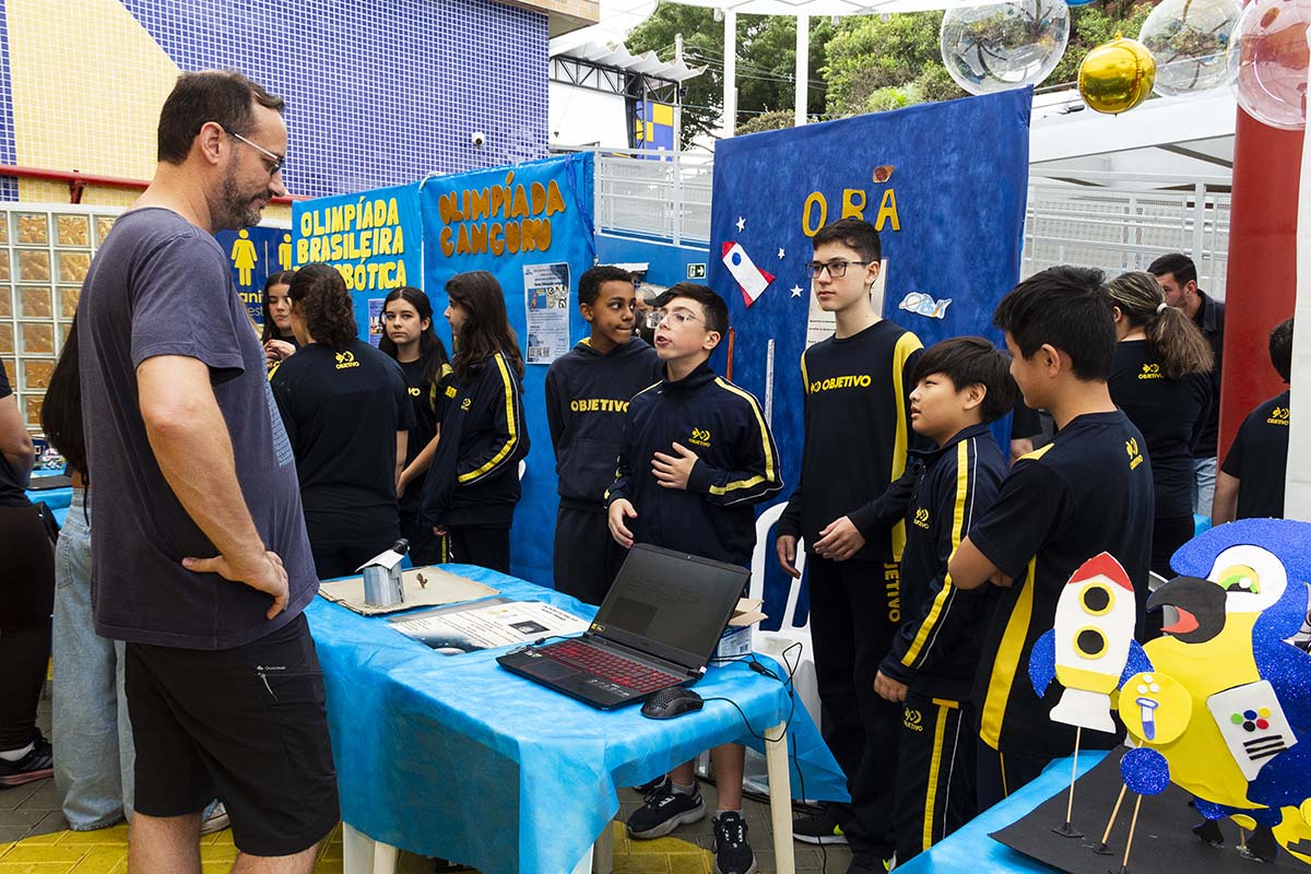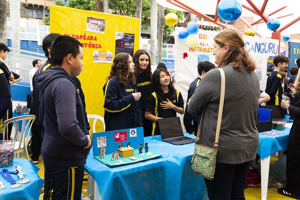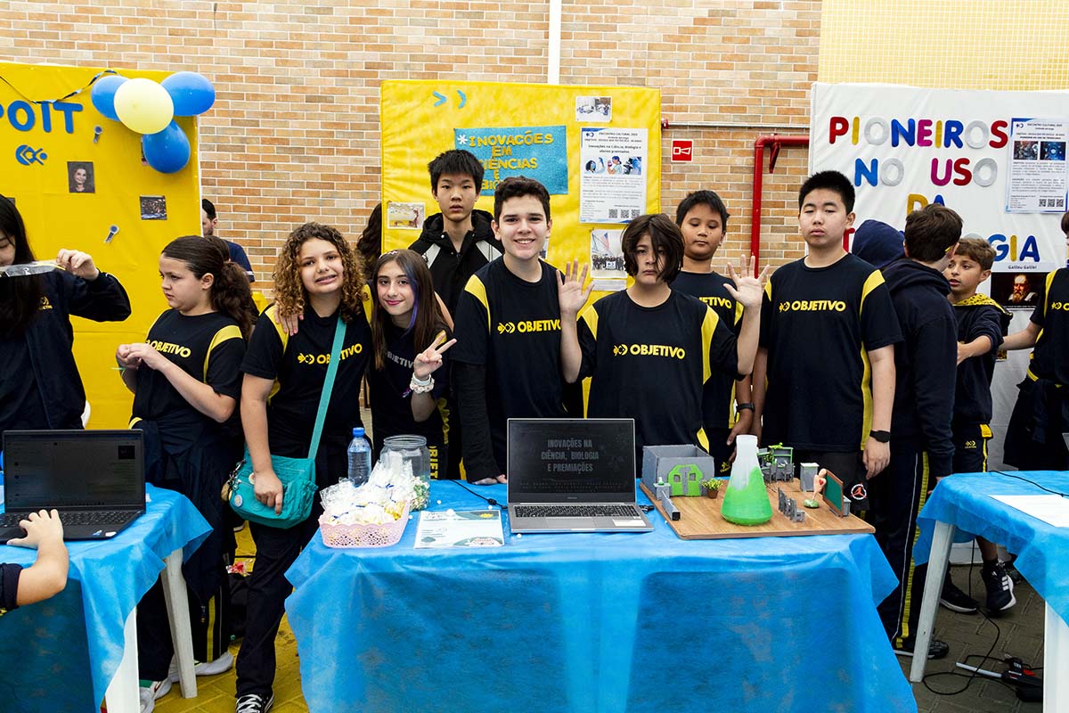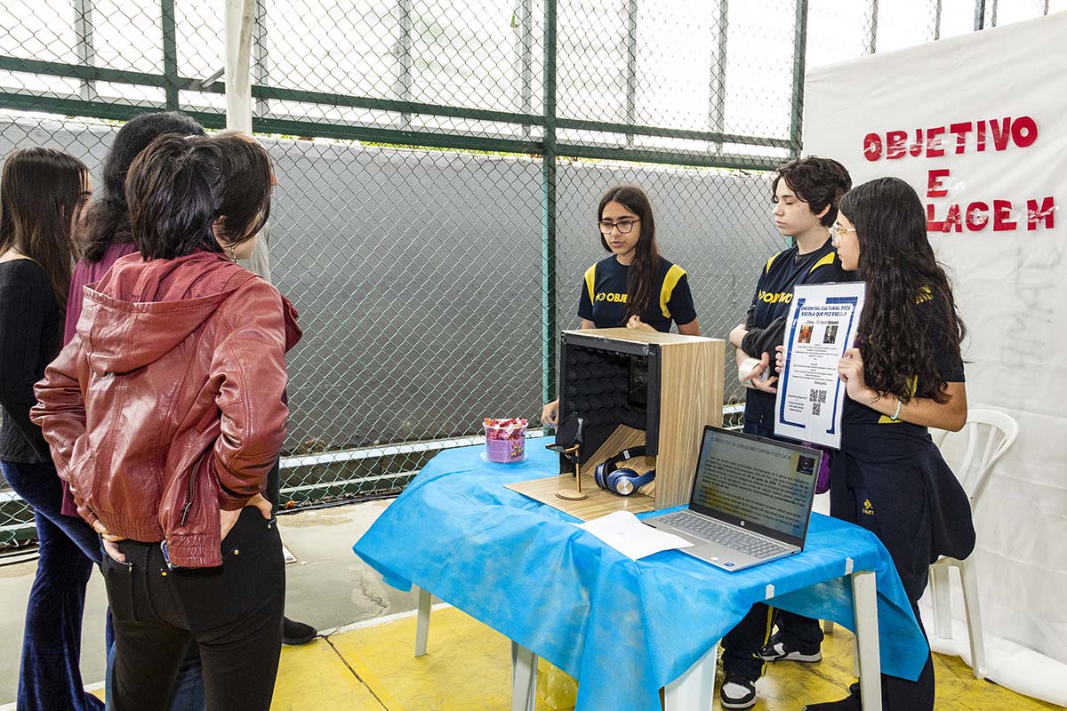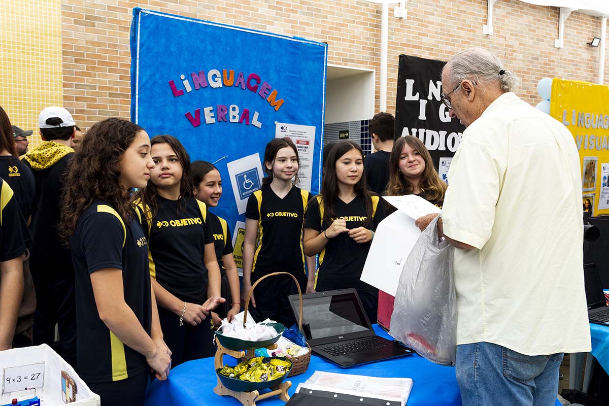Com o tema “60 anos de história e conquistas”, os alunos revisitaram o passado da instituição, produzindo trabalhos inspirados na trajetória e nas transformações vividas pelo Objetivo ao longo das décadas. A proposta levou os estudantes a explorarem aspectos como esportes, tecnologia, política, moda, música, meio ambiente, artes, educação, hábitos e costumes — tudo sob a perspectiva da evolução do próprio Objetivo e do mundo ao seu redor.