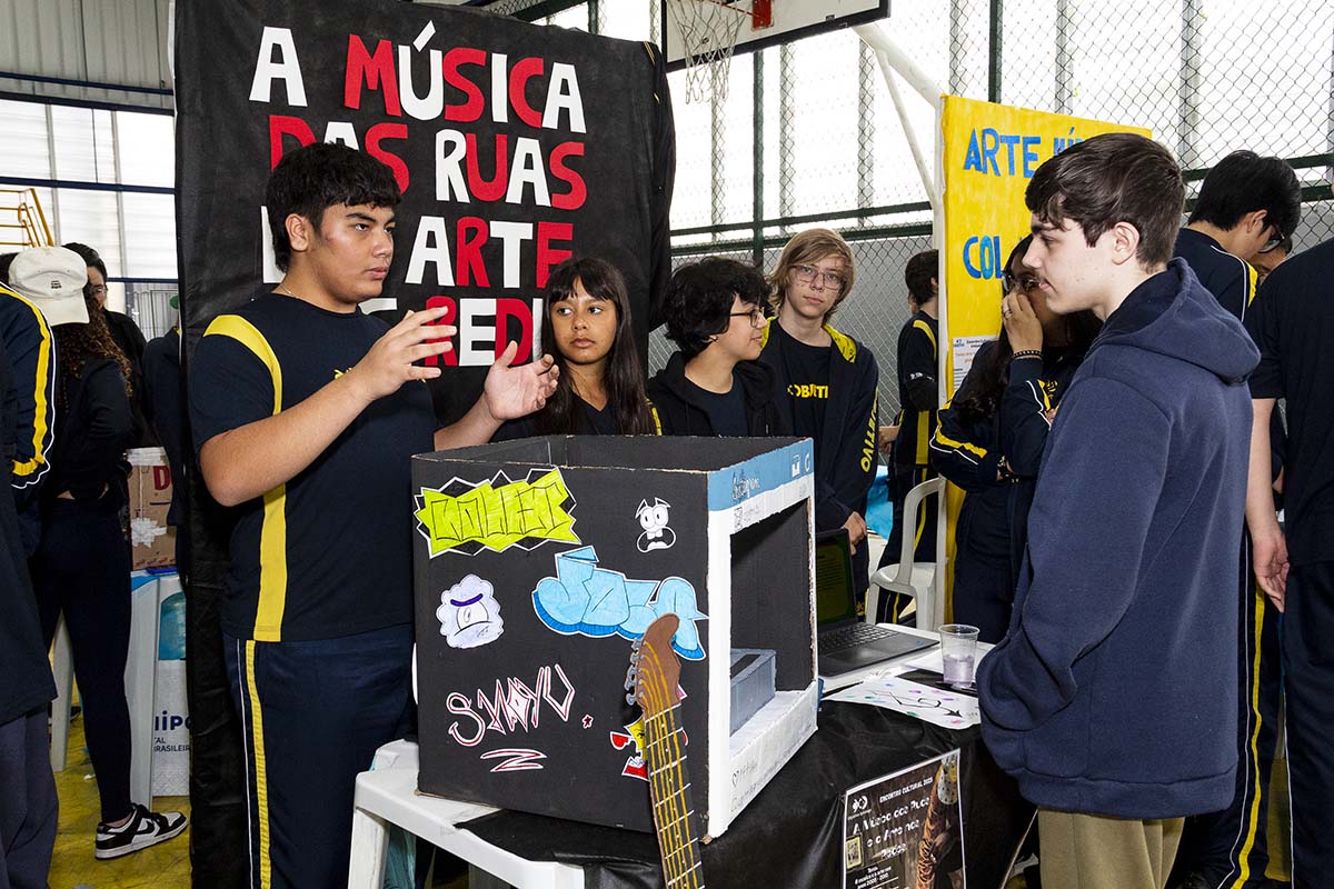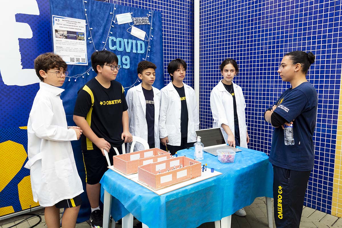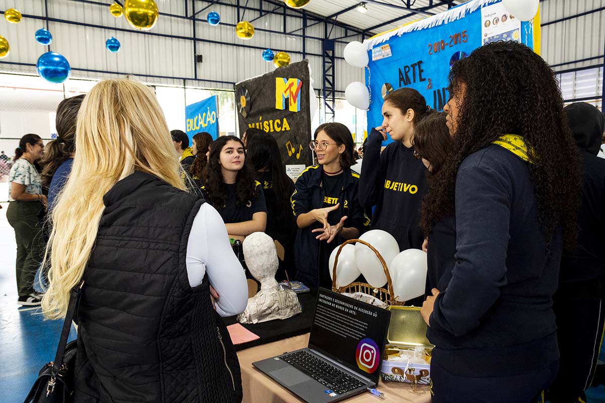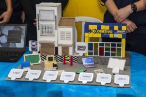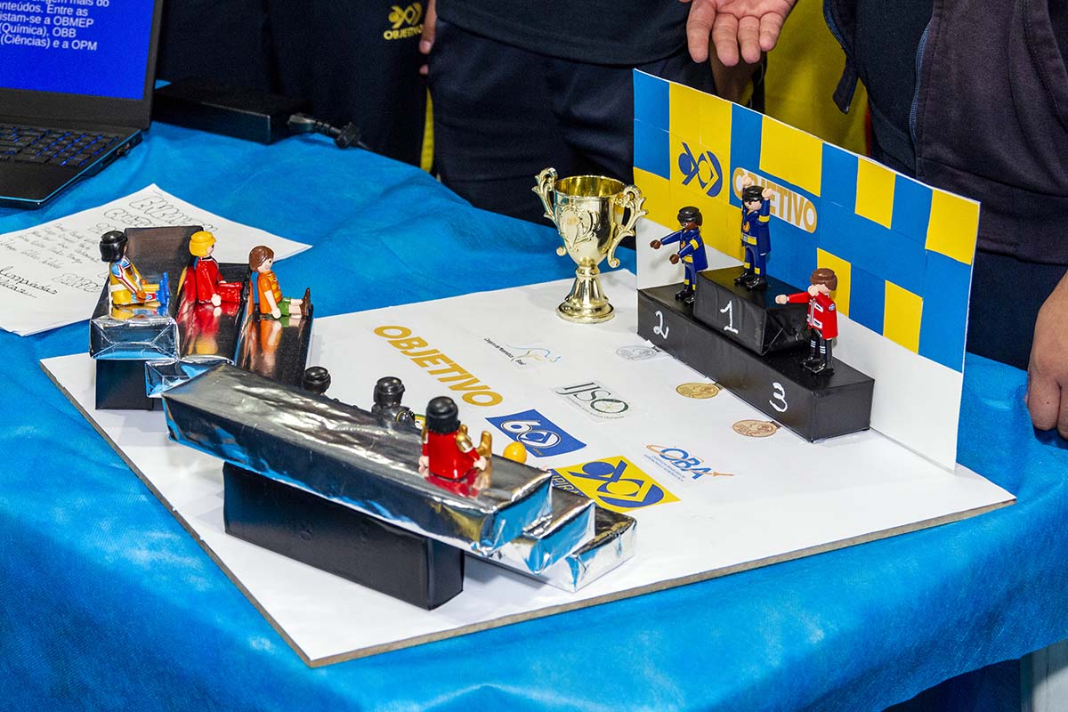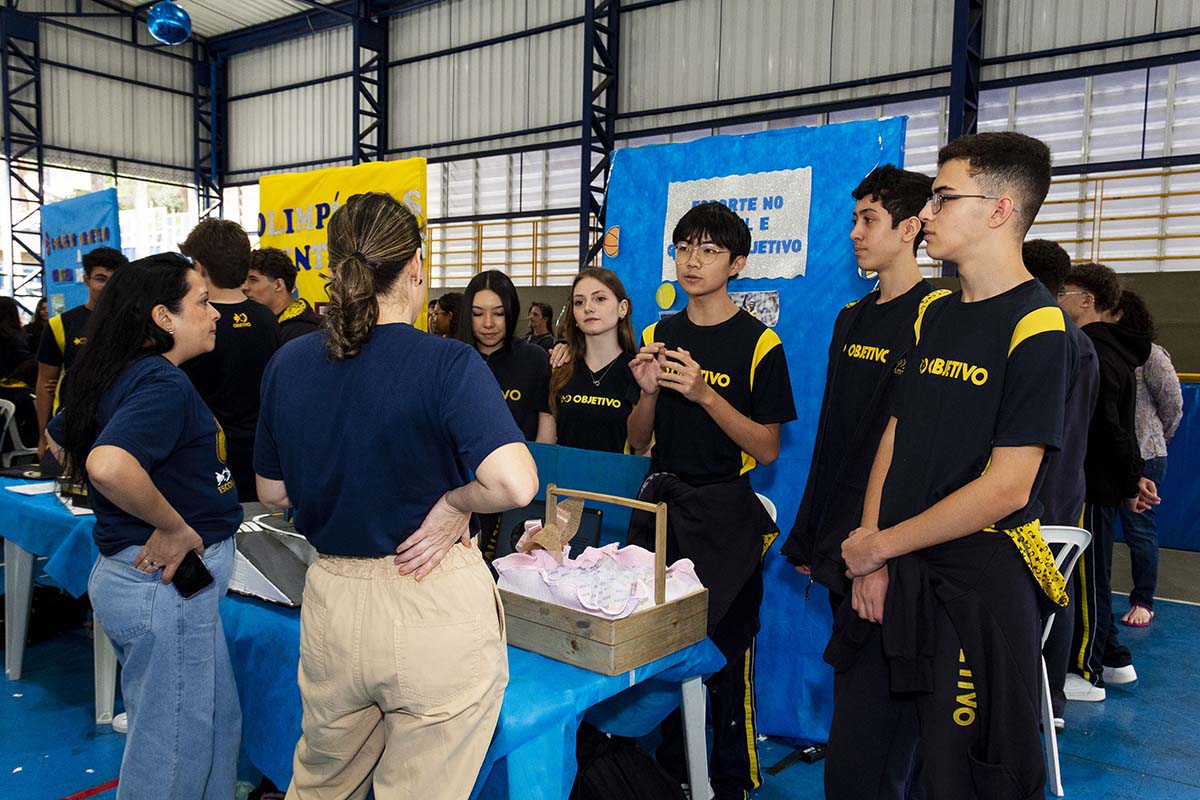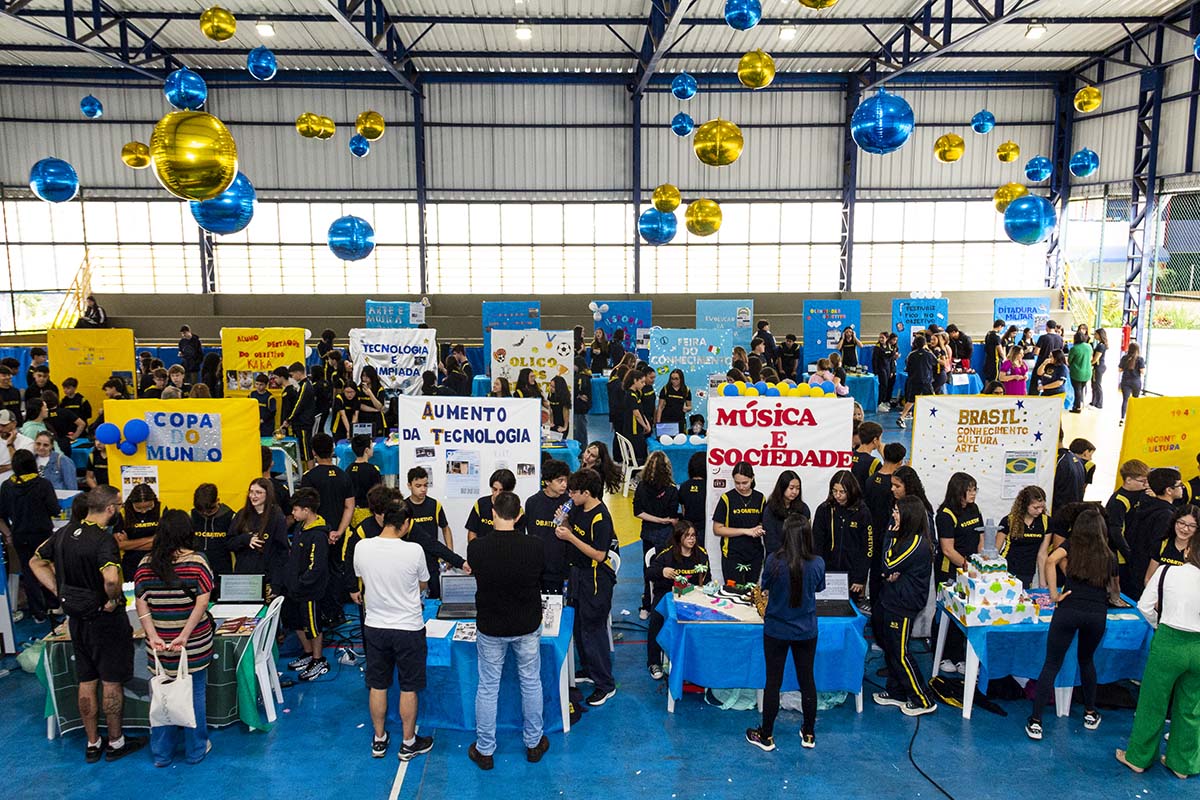 Com o tema “60 anos de história e conquistas”, os alunos revisitaram o passado da instituição, produzindo trabalhos inspirados na trajetória e nas transformações vividas pelo Objetivo ao longo das décadas. A proposta levou os estudantes a explorarem aspectos como esportes, tecnologia, política, moda, música, meio ambiente, artes, educação, hábitos e costumes — tudo sob a perspectiva da evolução do próprio Objetivo e do mundo ao seu redor.