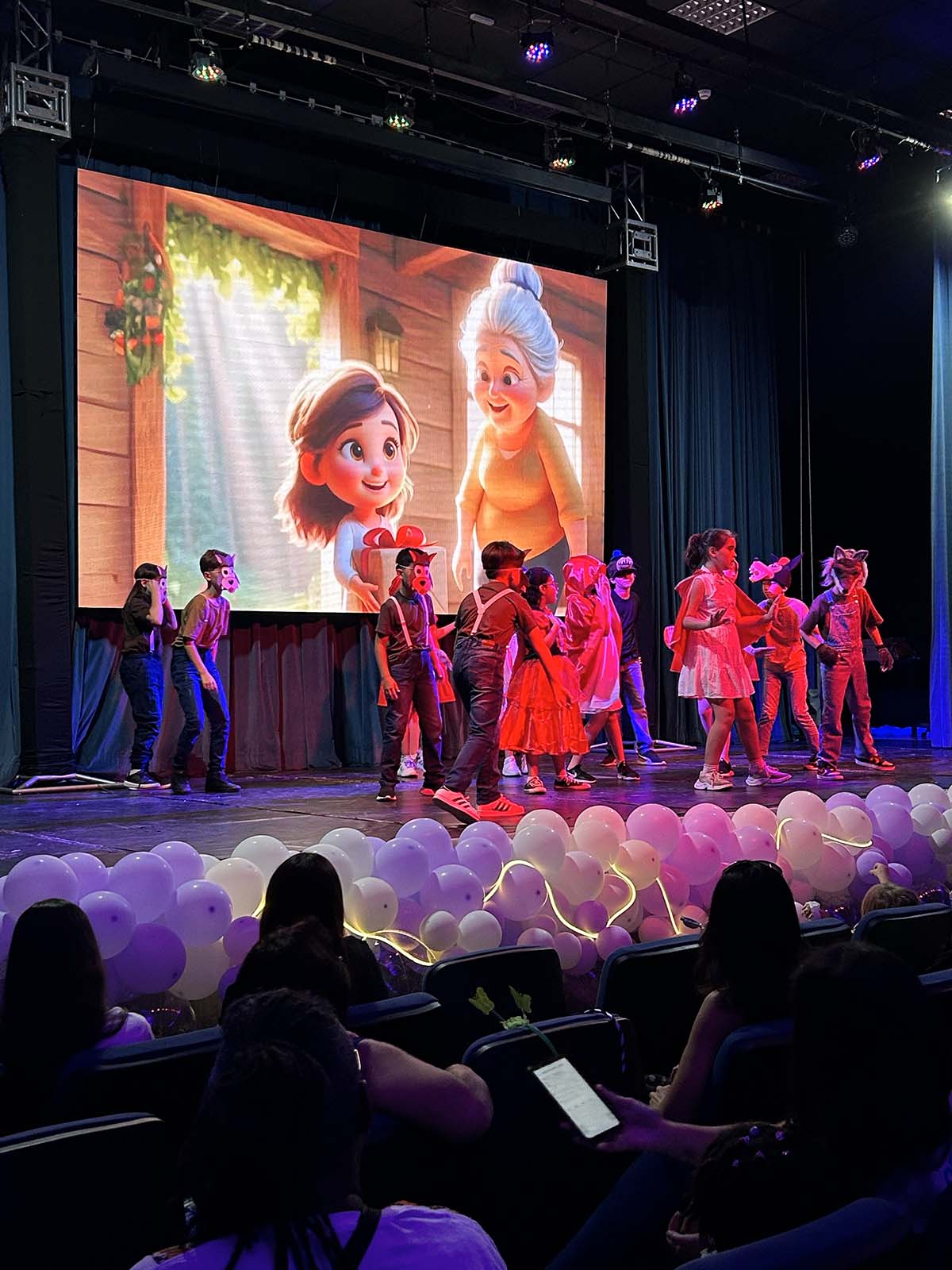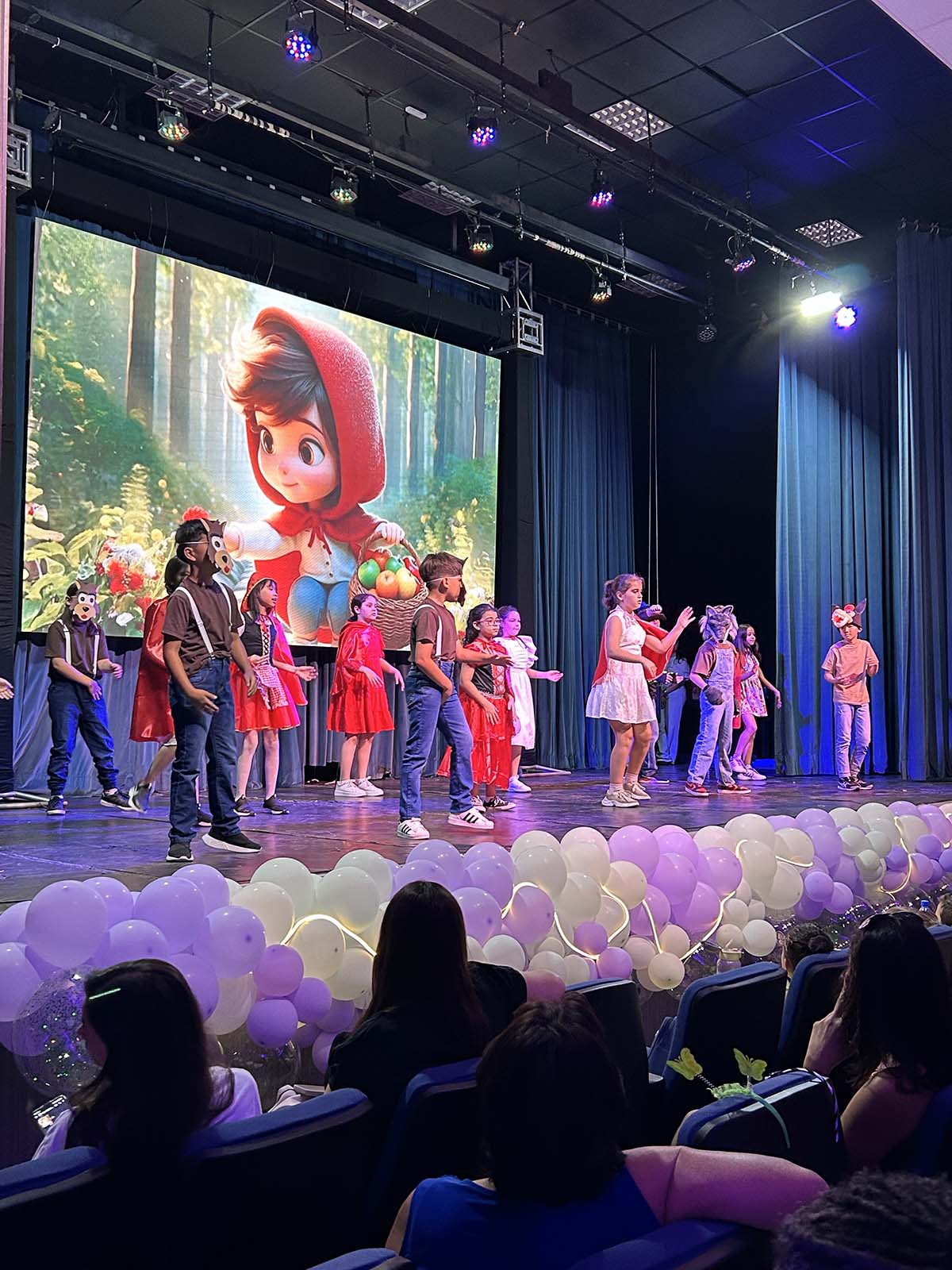 Com o tema “Contos: Era uma vez…”, nossas turmas levaram ao palco toda a imaginação, emoção e alegria que esse universo desperta. Entre as apresentações, encantaram o público histórias como Rapunzel, Chapeuzinho Vermelho, Gato de Botas, Peter Pan, Cinderela, A Bela e a Fera e Shrek, cada uma interpretada com criatividade e muita dedicação pelos alunos.