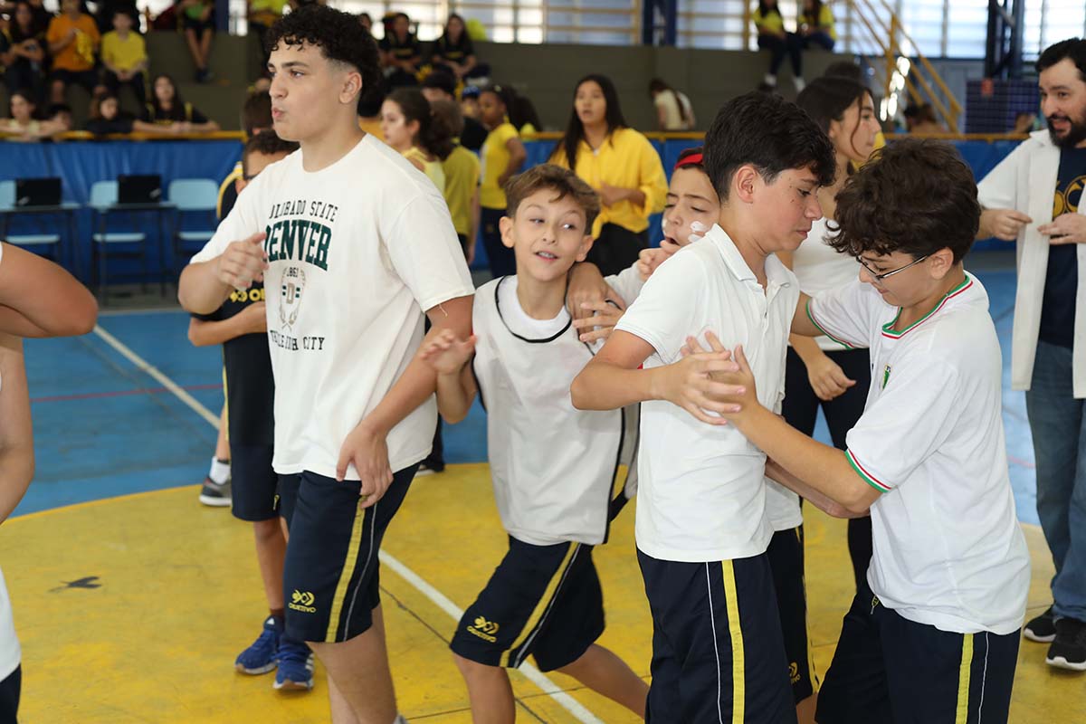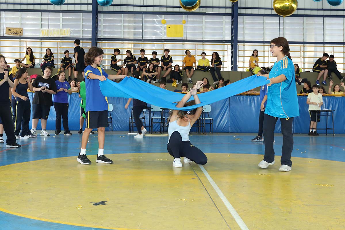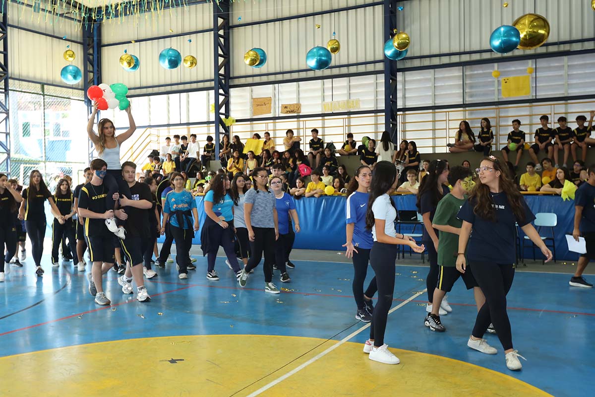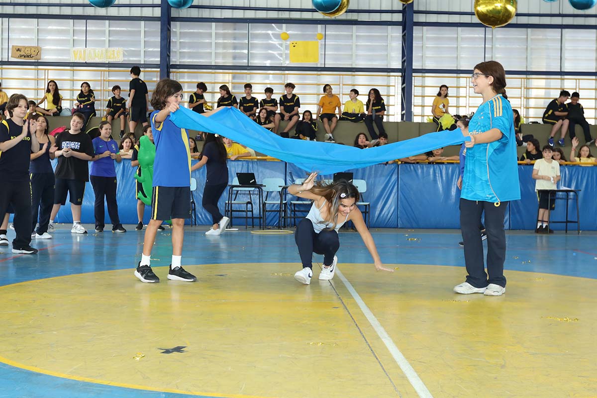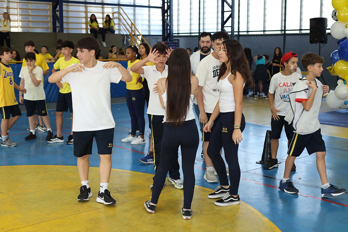 Divididos em três equipes- amarela, azul e branca – nossos alunos participaram de uma programação cheia de energia, com dinâmicas especiais, atividades surpresa, apresentações, produções artísticas, desafios de rapidez e muita diversão.