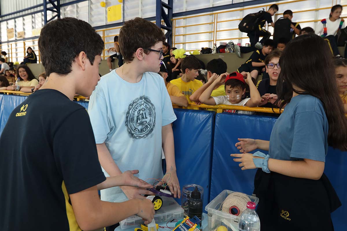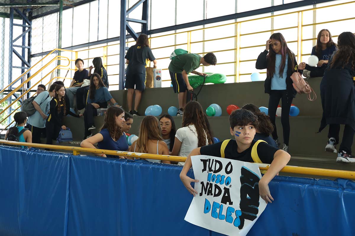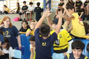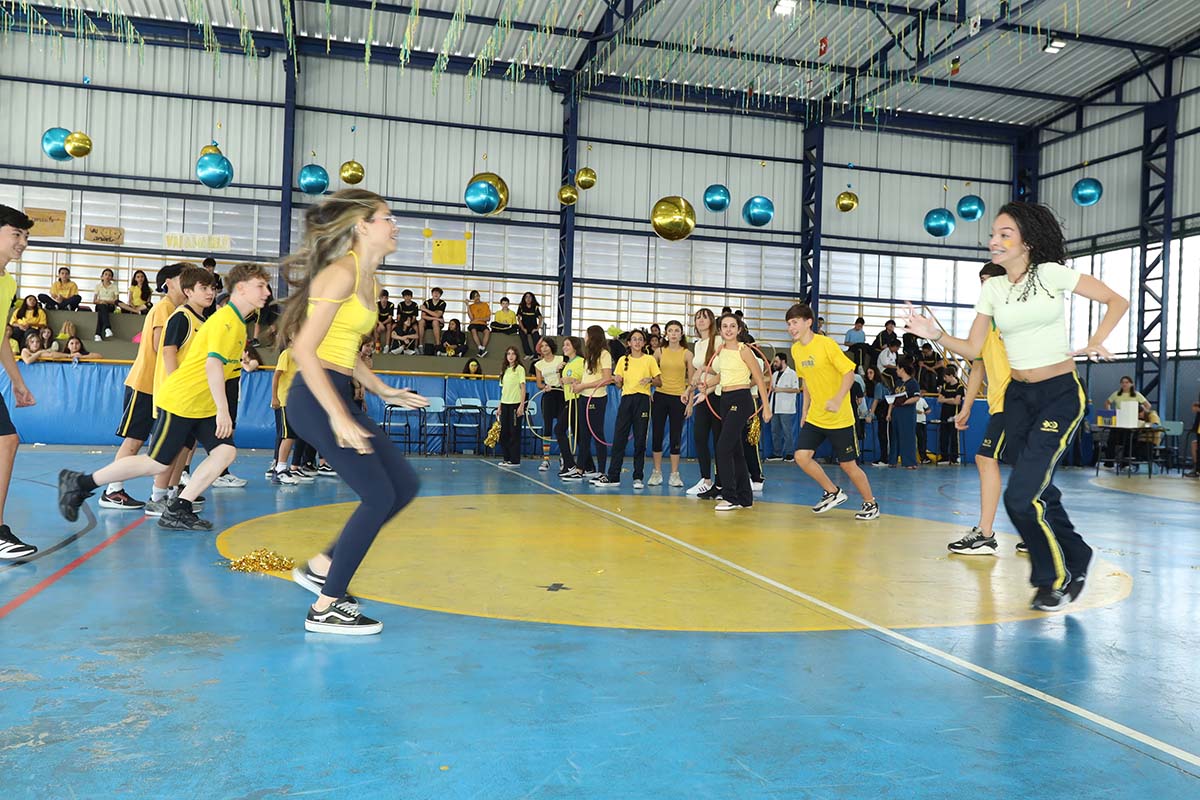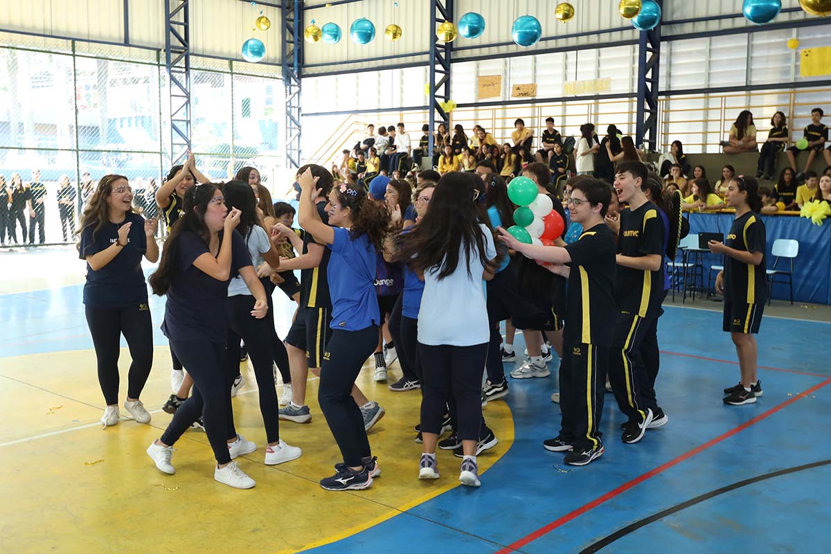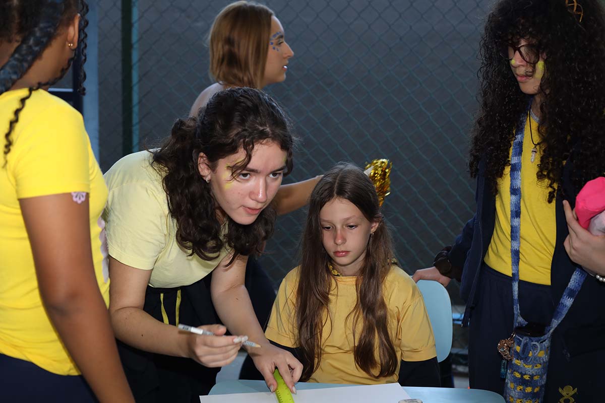 Divididos em três equipes- amarela, azul e branca – nossos alunos participaram de uma programação cheia de energia, com dinâmicas especiais, atividades surpresa, apresentações, produções artísticas, desafios de rapidez e muita diversão.